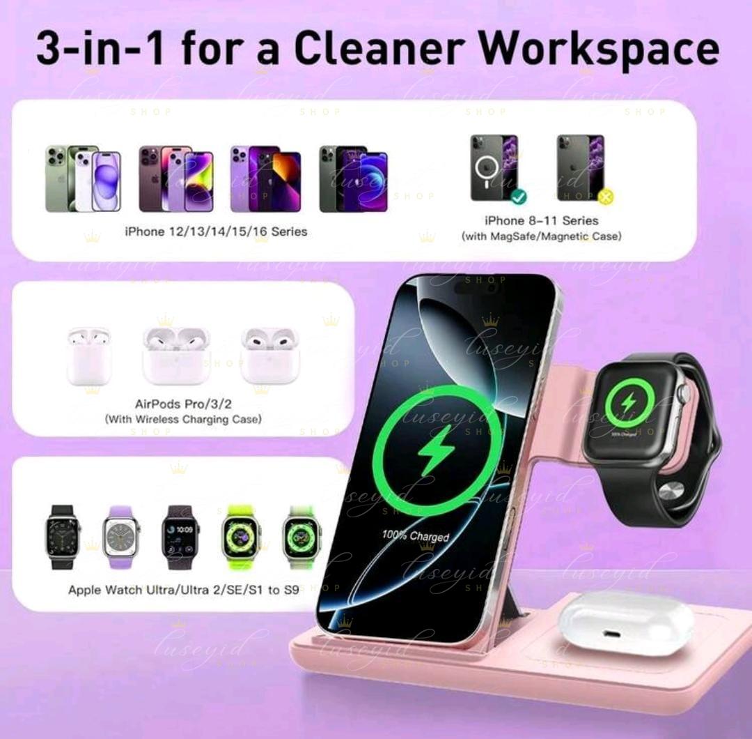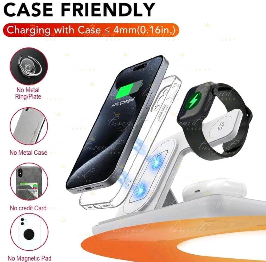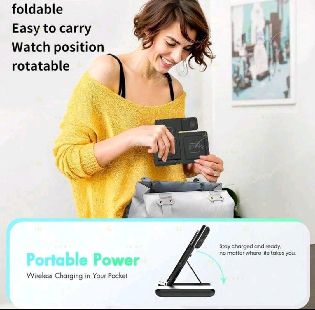 Estación de carga inalámbrica plegable 3 en 1, soporte de carga rápida compatible con IWatch Series 9 8 7 6 SE 5 4 3 2 Ultra Pro 3 2 y Apple 17 16 15 14Pro 14 13 Pro Max 13 12 11 Pro X, carga de múltiples dispositivos, protección, carga inalámbrica rápida, adecuado para oficina, dormitorio y hogar, regalo de teléfono, Navidad, soporte para teléfono inteligente (se recomienda usar con funda de teléfono no demasiado gruesa)