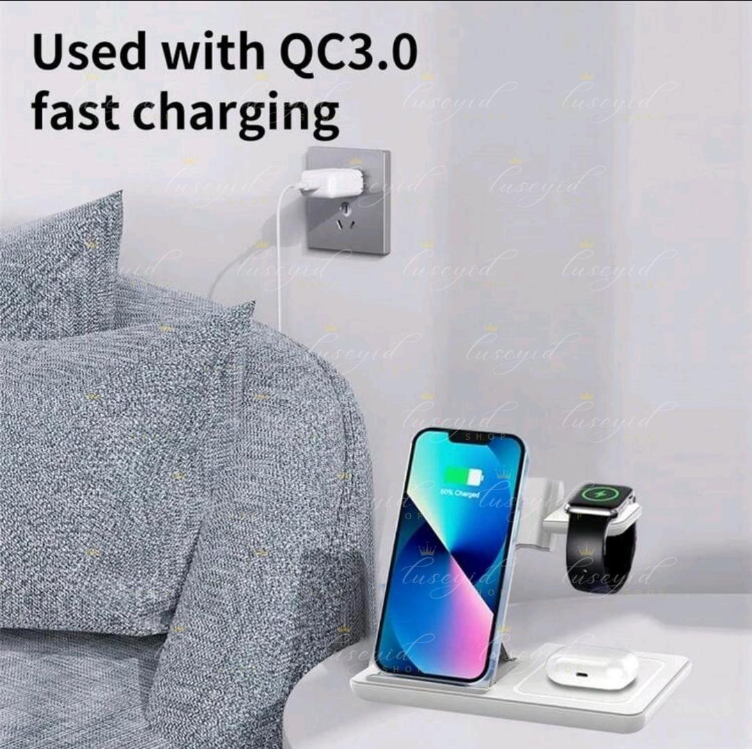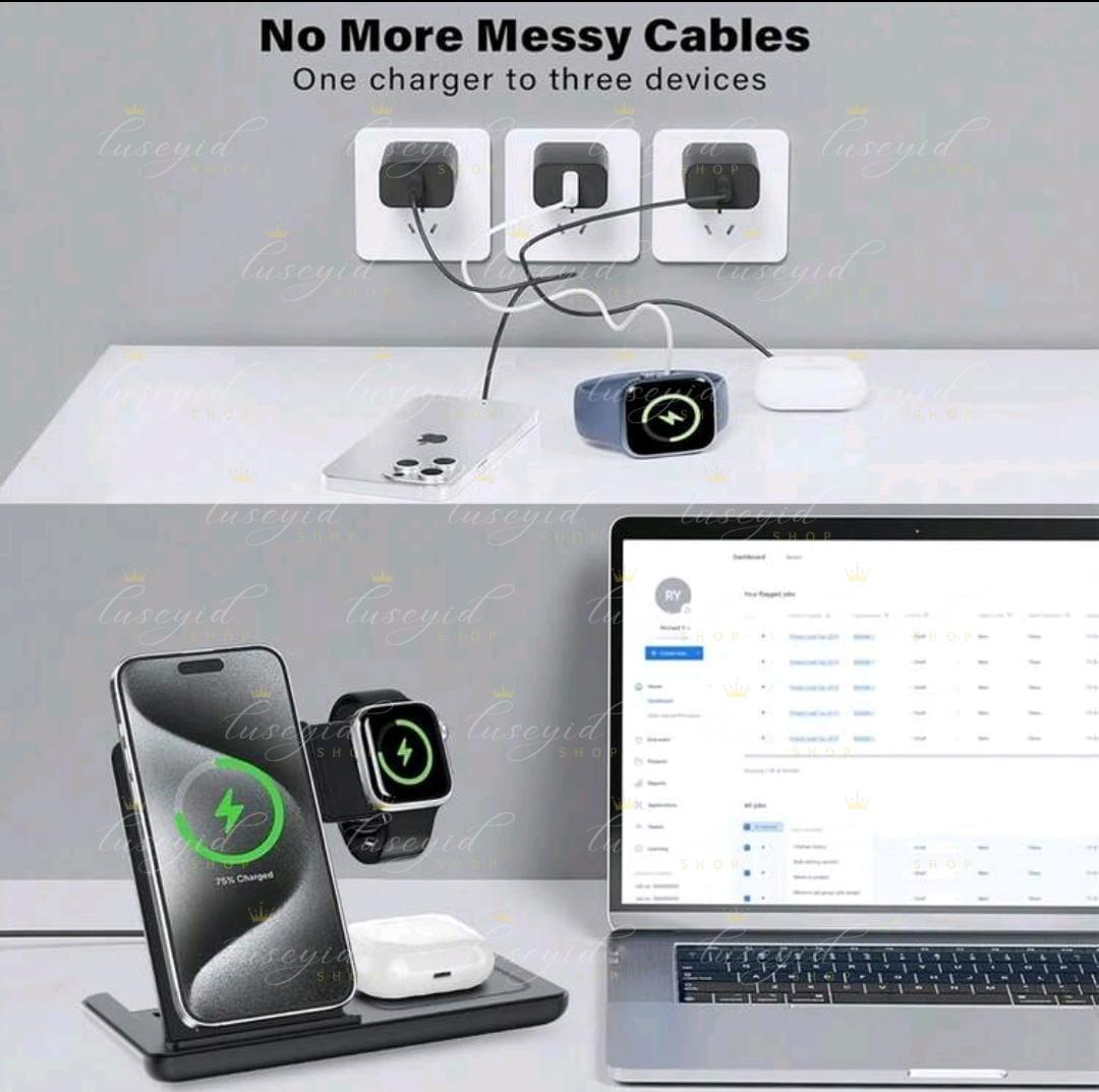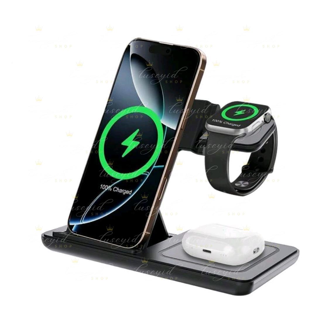 Estación de carga inalámbrica plegable 3 en 1, soporte de carga rápida compatible con IWatch Series 9 8 7 6 SE 5 4 3 2 Ultra Pro 3 2 y Apple 17 16 15 14Pro 14 13 Pro Max 13 12 11 Pro X, carga de múltiples dispositivos, protección, carga inalámbrica rápida, adecuado para oficina, dormitorio y hogar, regalo de teléfono, Navidad, soporte para teléfono inteligente (se recomienda usar con funda de teléfono no demasiado gruesa)