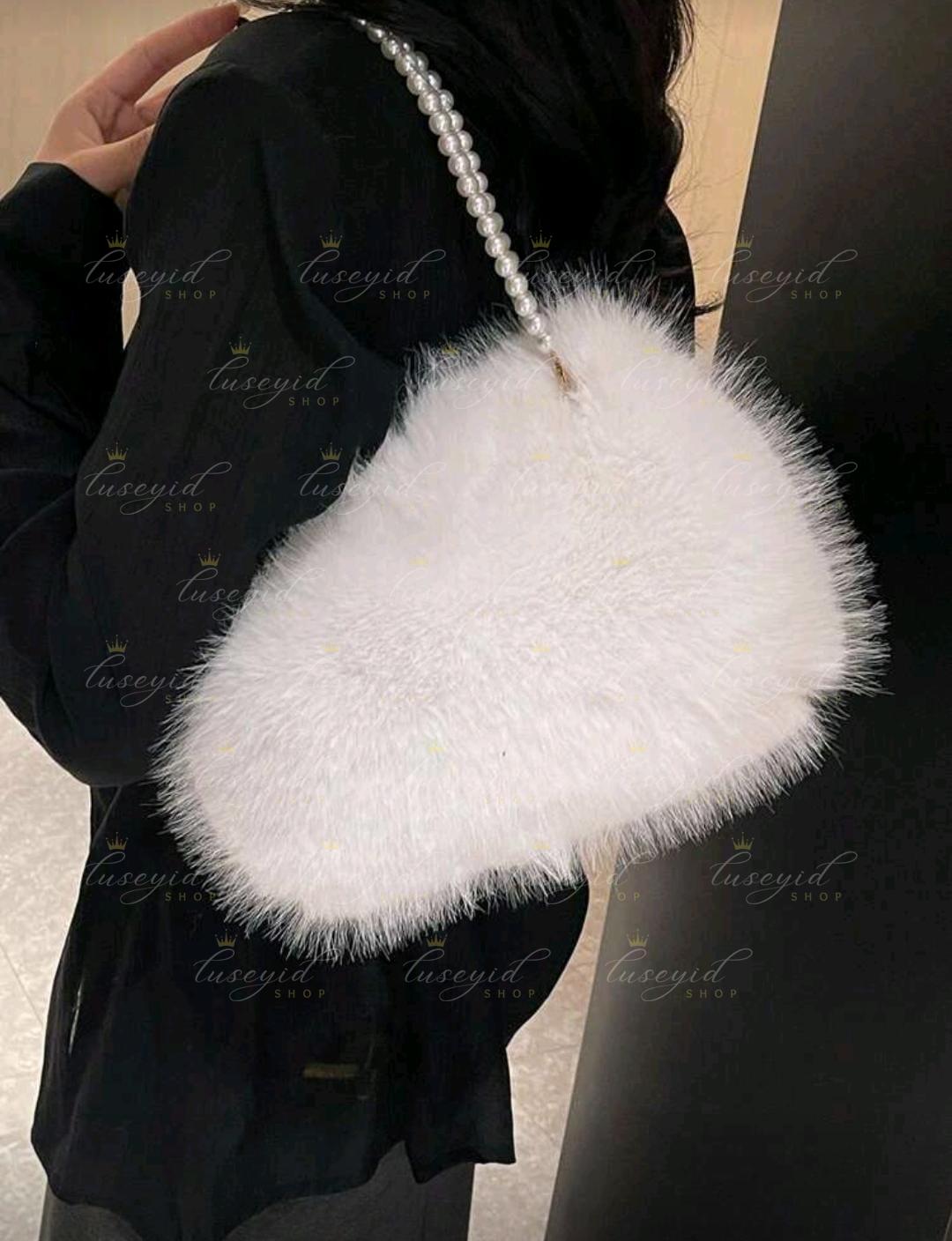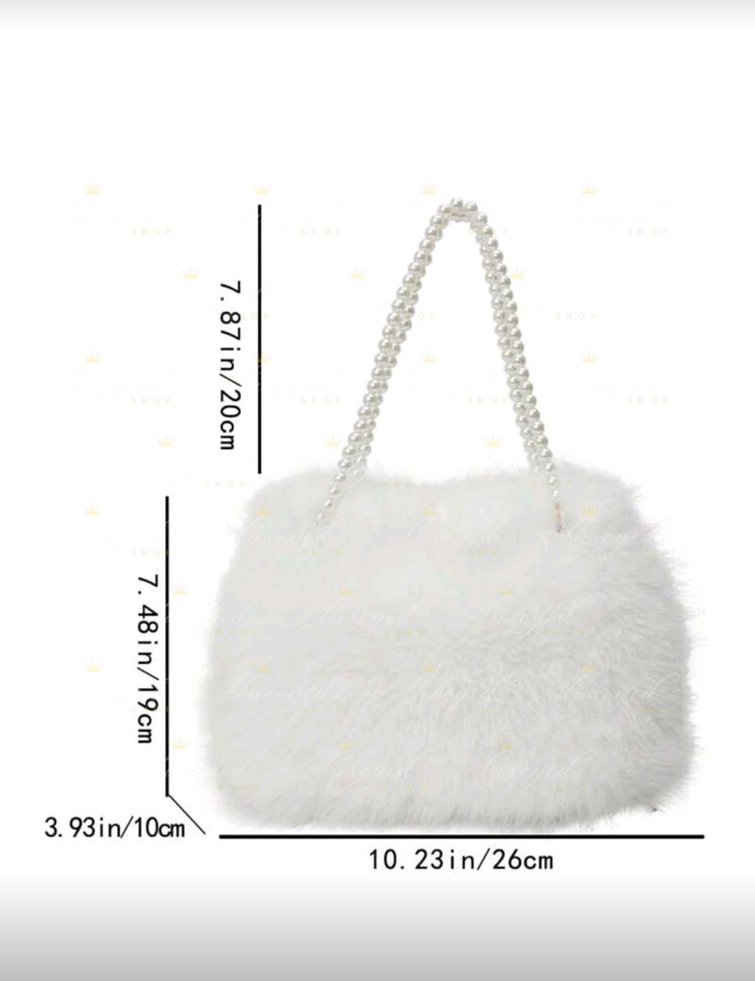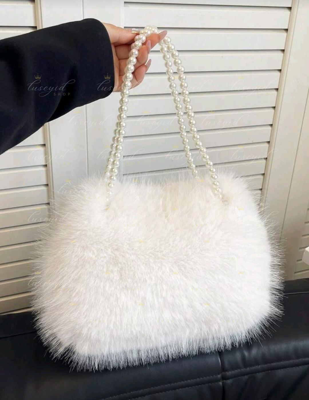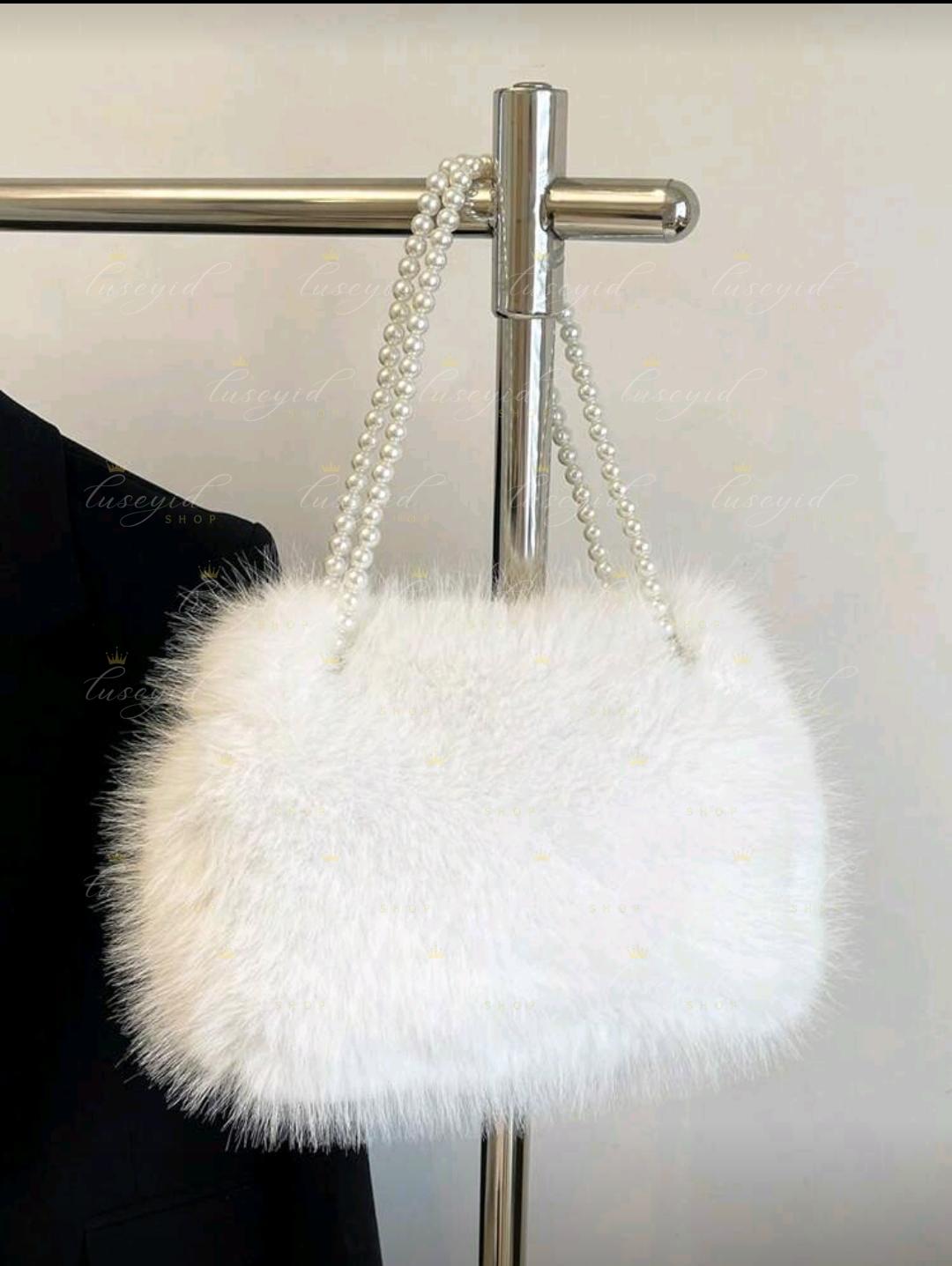 Nuevo bolso de mano de felpa versátil y esponjoso para mujer, elegante bolso de hombro de gran capacidad con doble asa de cadena de perlas falsas, bolso casual para viajes al aire libre, vacaciones y compras, bolso ligero para uso diario en la oficina, bolso de mujer de temporada otoño-invierno, nueva llegada de bolso de piel, nueva llegada de bolso de piel para mujer