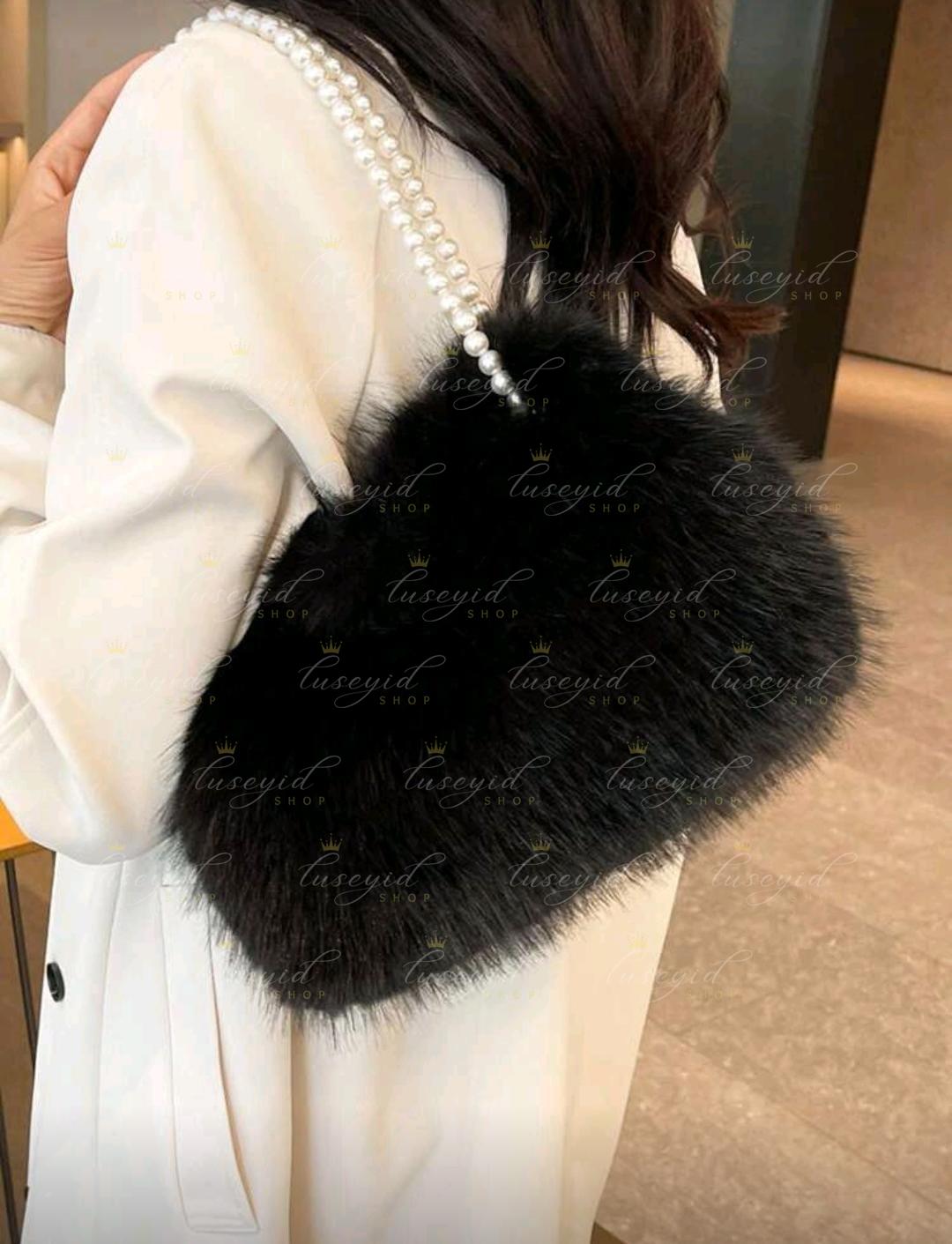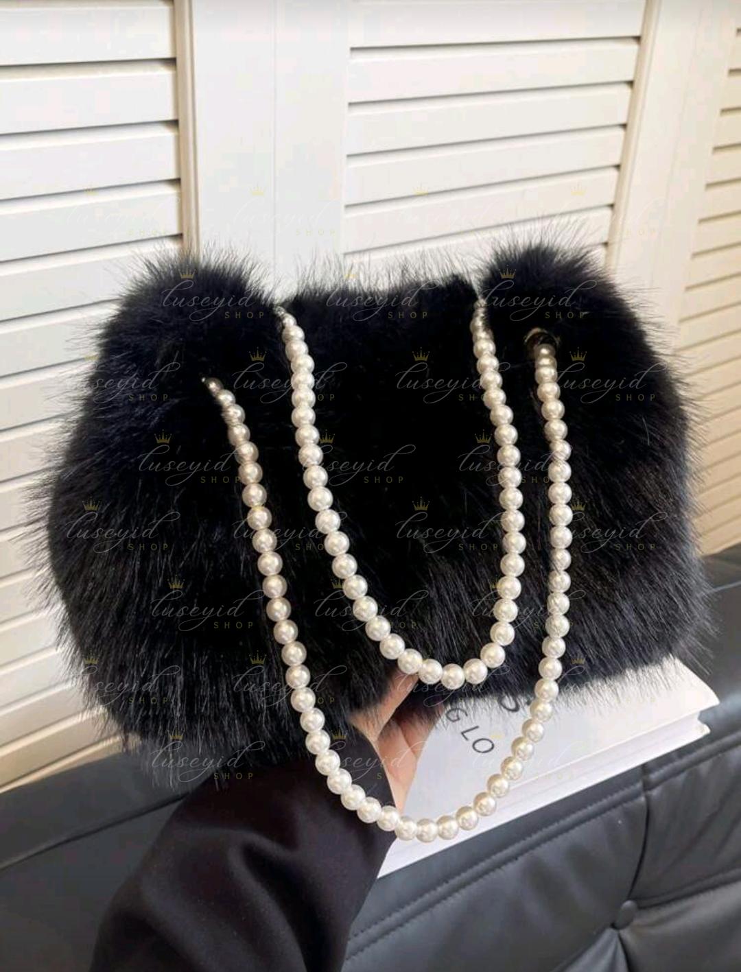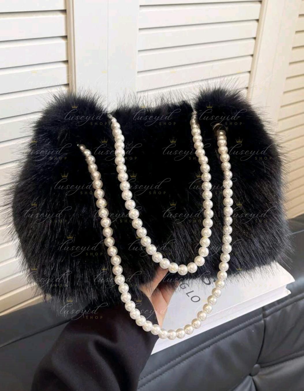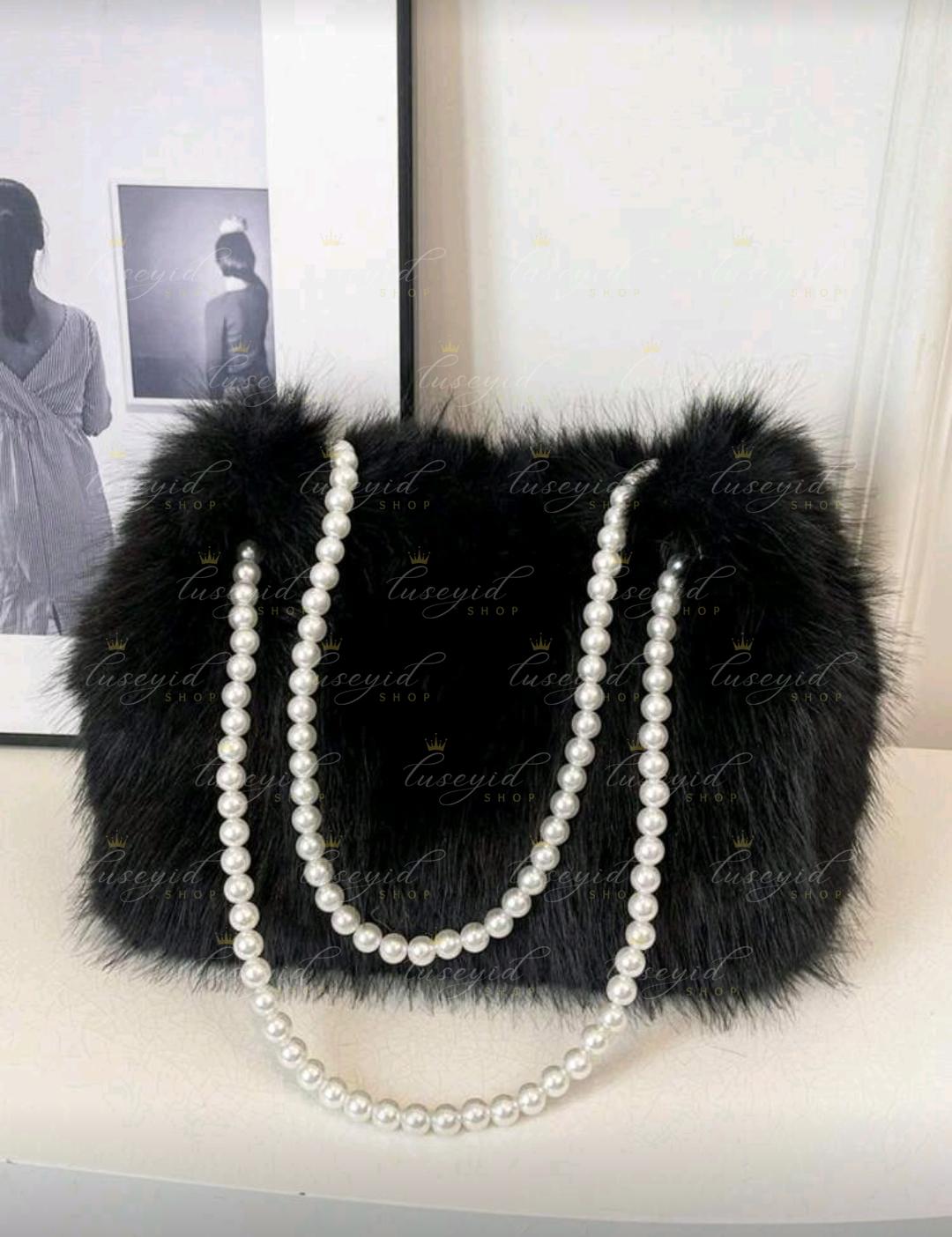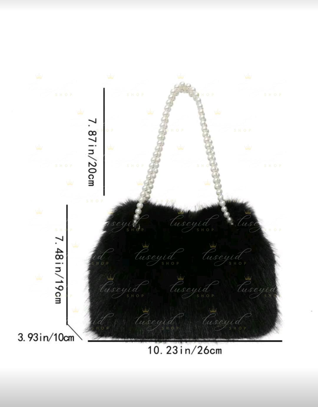 Nuevo bolso de mano de felpa versátil y esponjoso para mujer, elegante bolso de hombro de gran capacidad con doble asa de cadena de perlas falsas, bolso casual para viajes al aire libre, vacaciones y compras, bolso ligero para uso diario en la oficina, bolso de mujer de temporada otoño-invierno, nueva llegada de bolso de piel, nueva llegada de bolso de piel para mujer