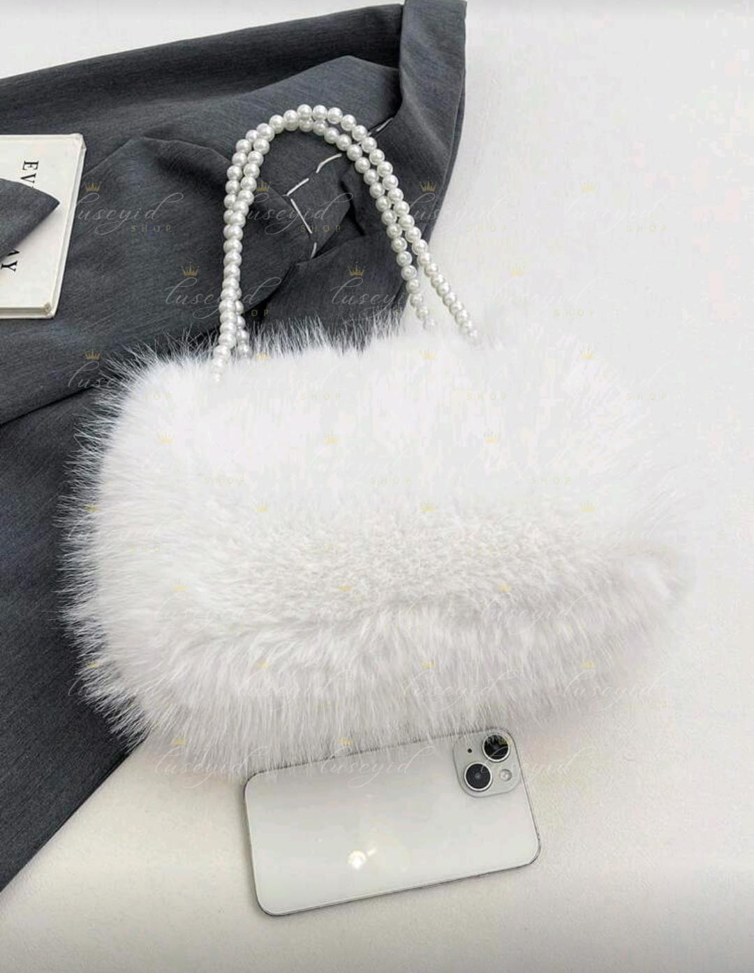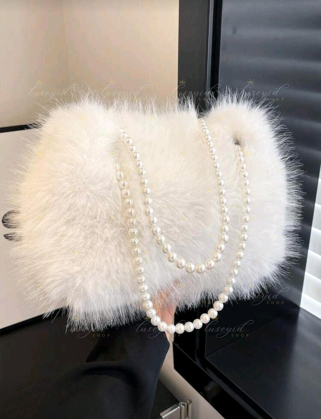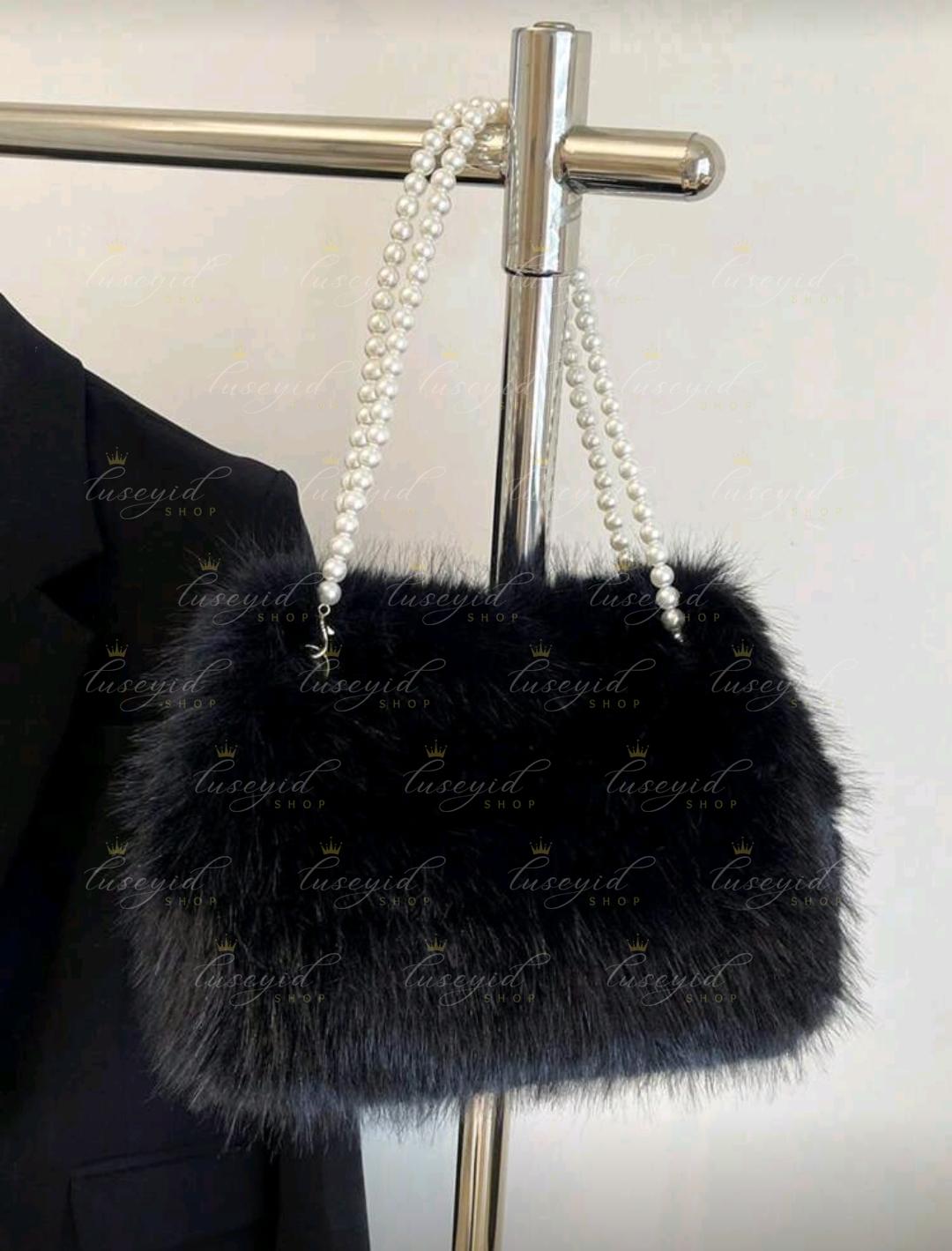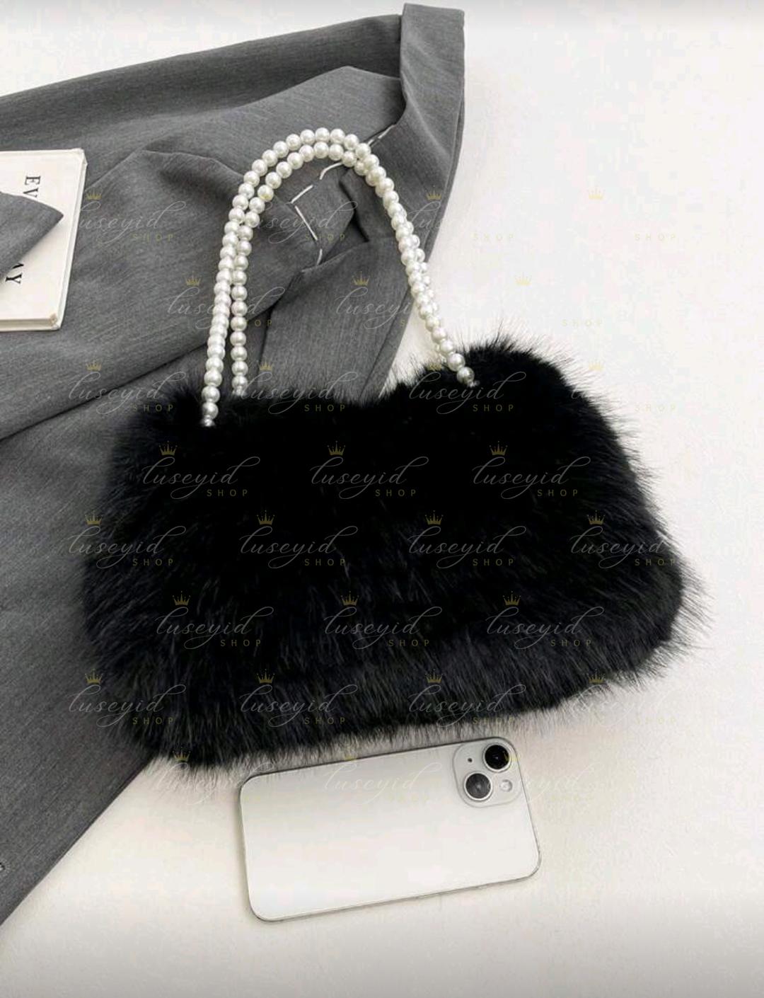Nuevo bolso de mano de felpa versátil y esponjoso para mujer, elegante bolso de hombro de gran capacidad con doble asa de cadena de perlas falsas, bolso casual para viajes al aire libre, vacaciones y compras, bolso ligero para uso diario en la oficina, bolso de mujer de temporada otoño-invierno, nueva llegada de bolso de piel, nueva llegada de bolso de piel para mujer