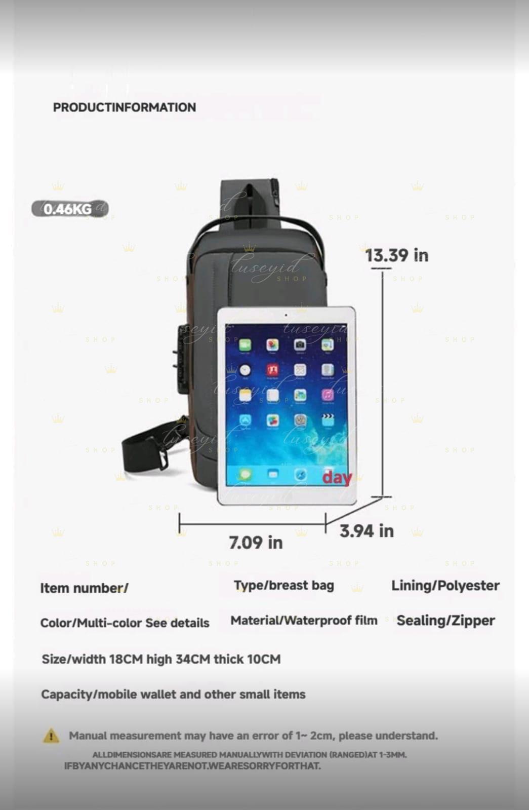 Bolso de hombre, bolso de pecho, bolso bandolera de gran capacidad con cierre de contraseña antirrobo, mochila pequeña casual deportiva para hombre, bolso de motocicleta, bolso de moda y resistente al desgaste para hombre, adecuado para adolescentes, casual al aire libre, deportes, viajes, regalos de graduación o cumpleaños, accesorios de vestir, streetwear