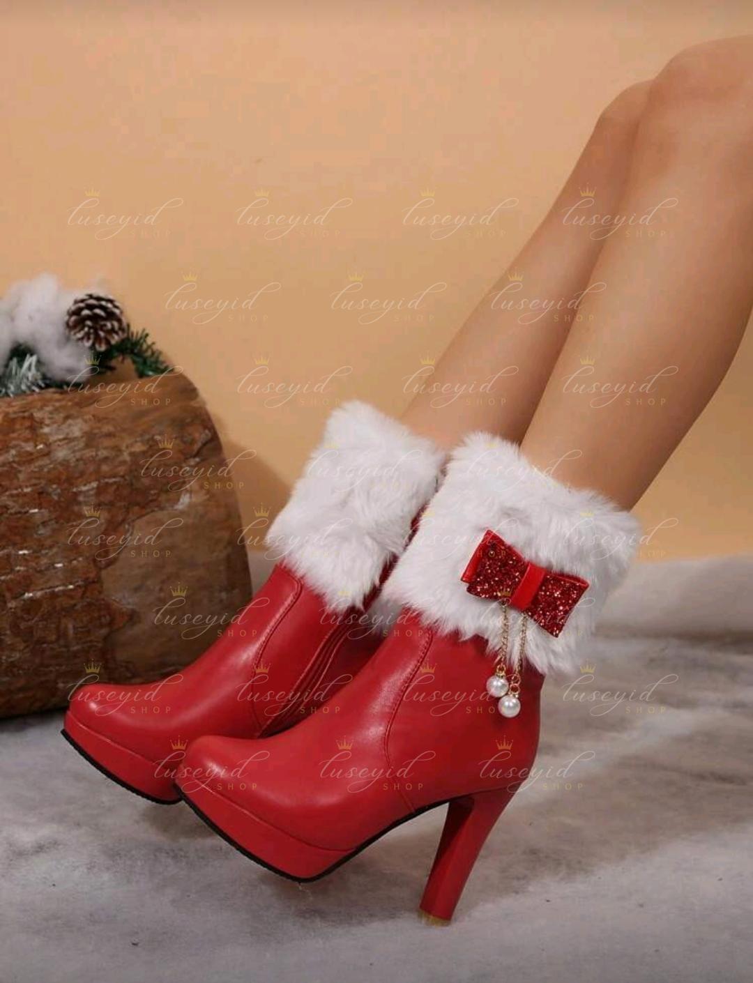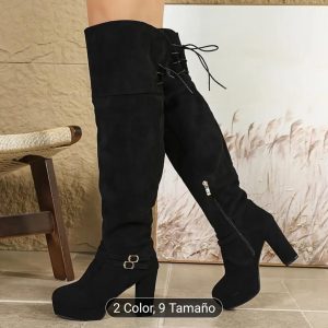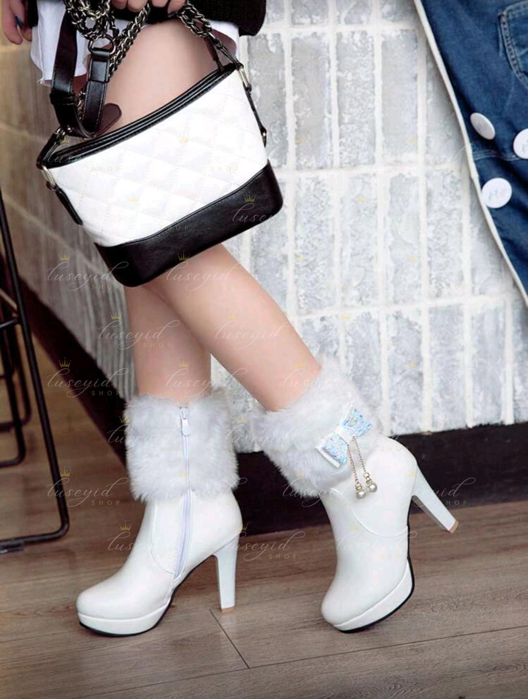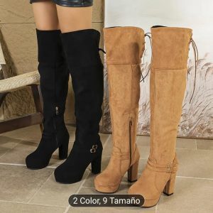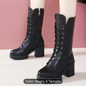 Nuevas botas de mujer de moda con tacón grueso para otoño e invierno, punta redonda, tubo corto cálido, lazo, versátil y cómodo