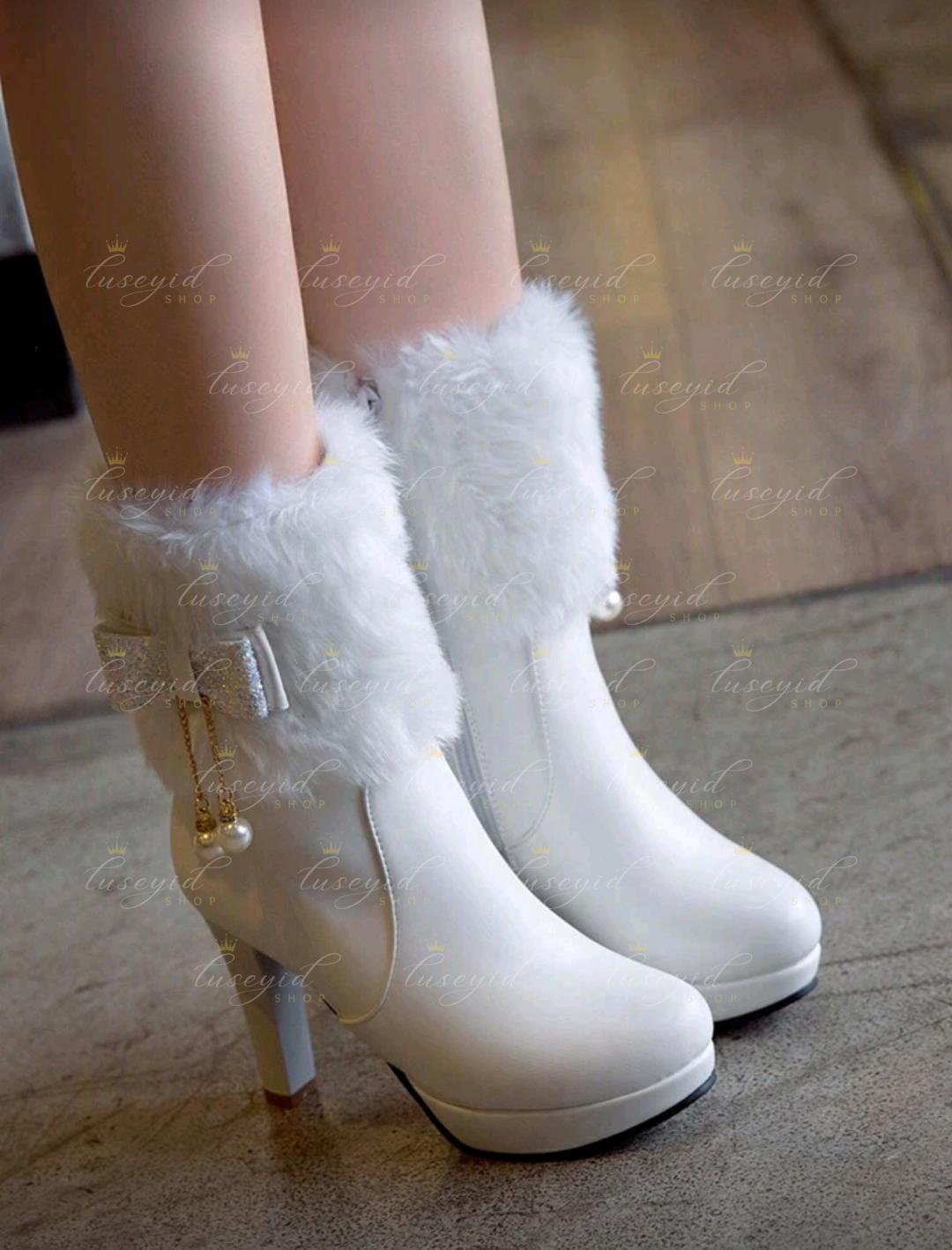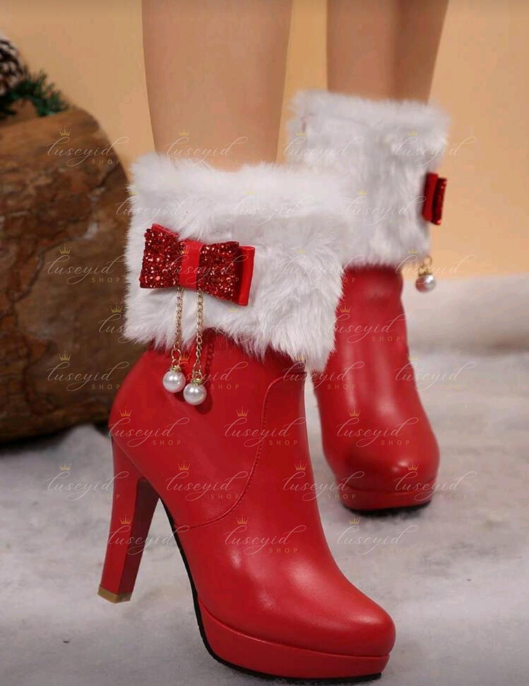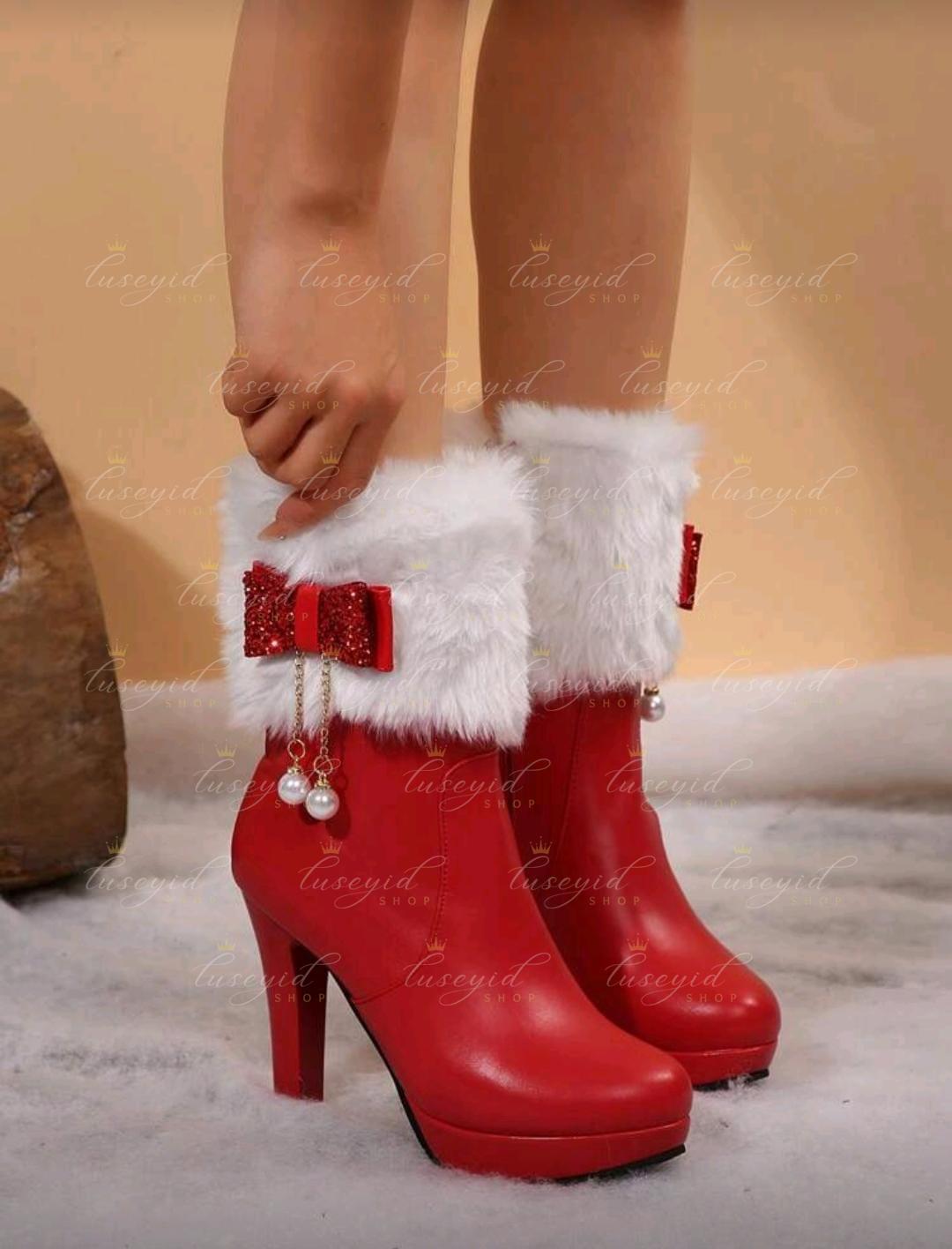 Nuevas botas de mujer de moda con tacón grueso para otoño e invierno, punta redonda, tubo corto cálido, lazo, versátil y cómodo