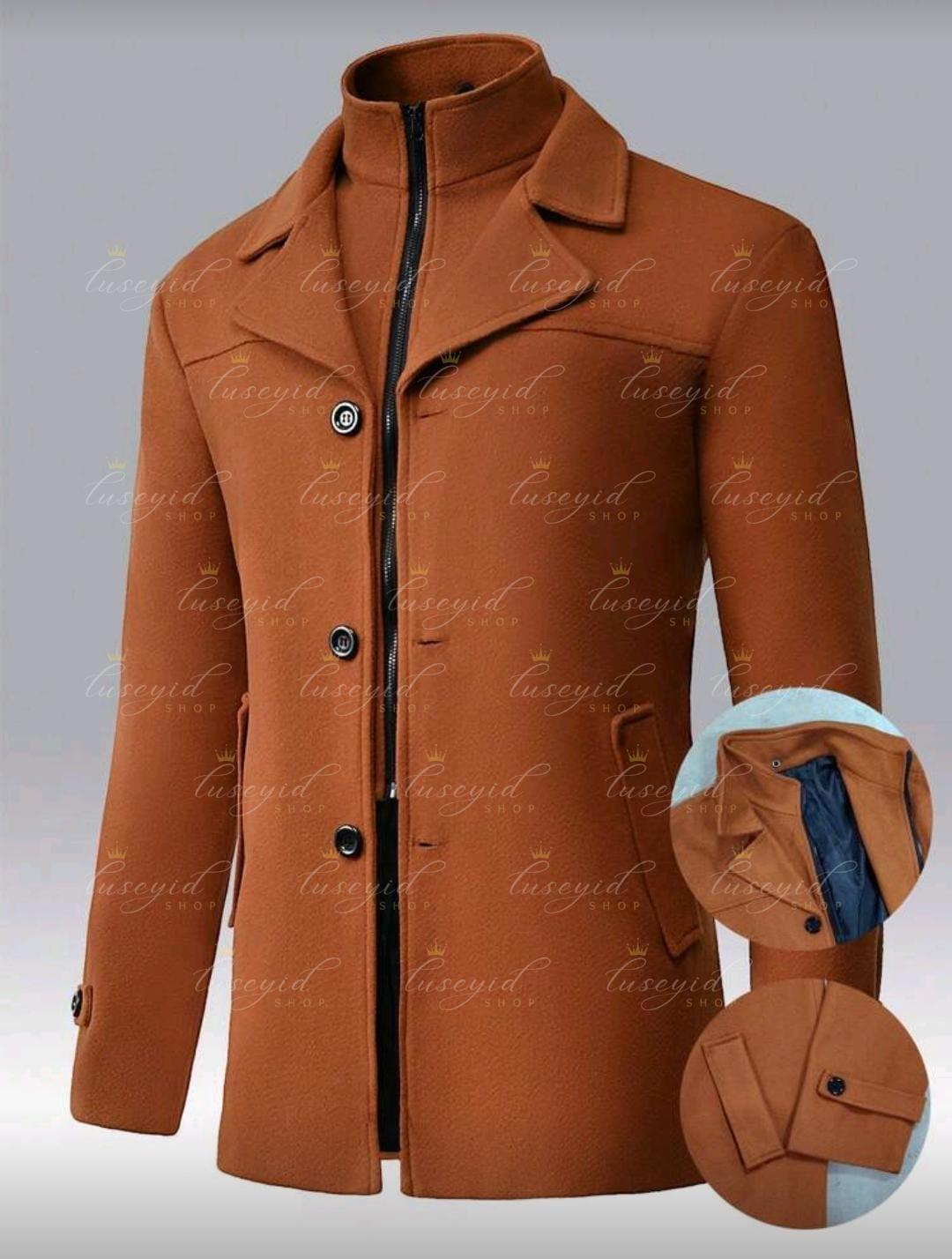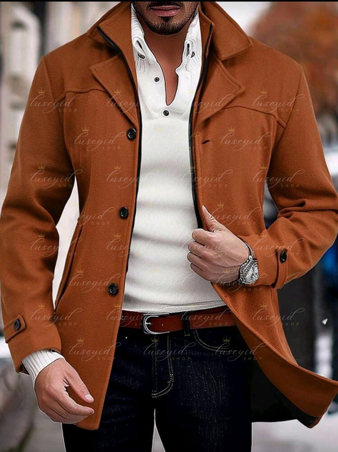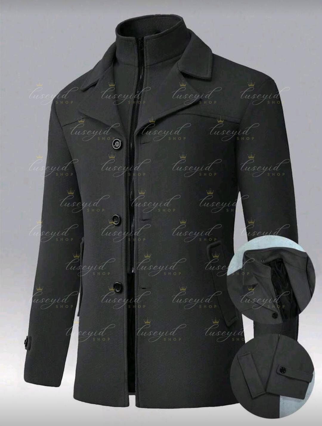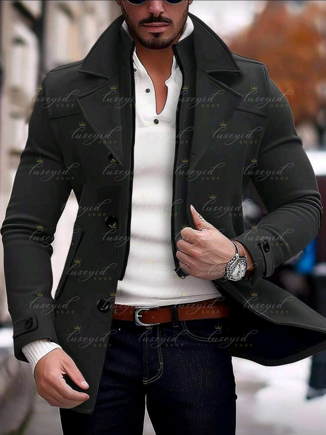 Manfinity Homme Chaqueta casual de mezcla de lana de manga larga con cuello de solapa, unicolor, para otoño/invierno