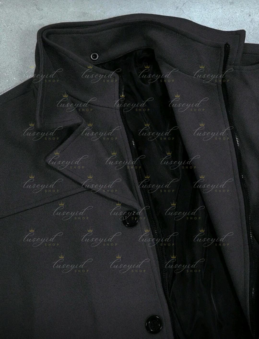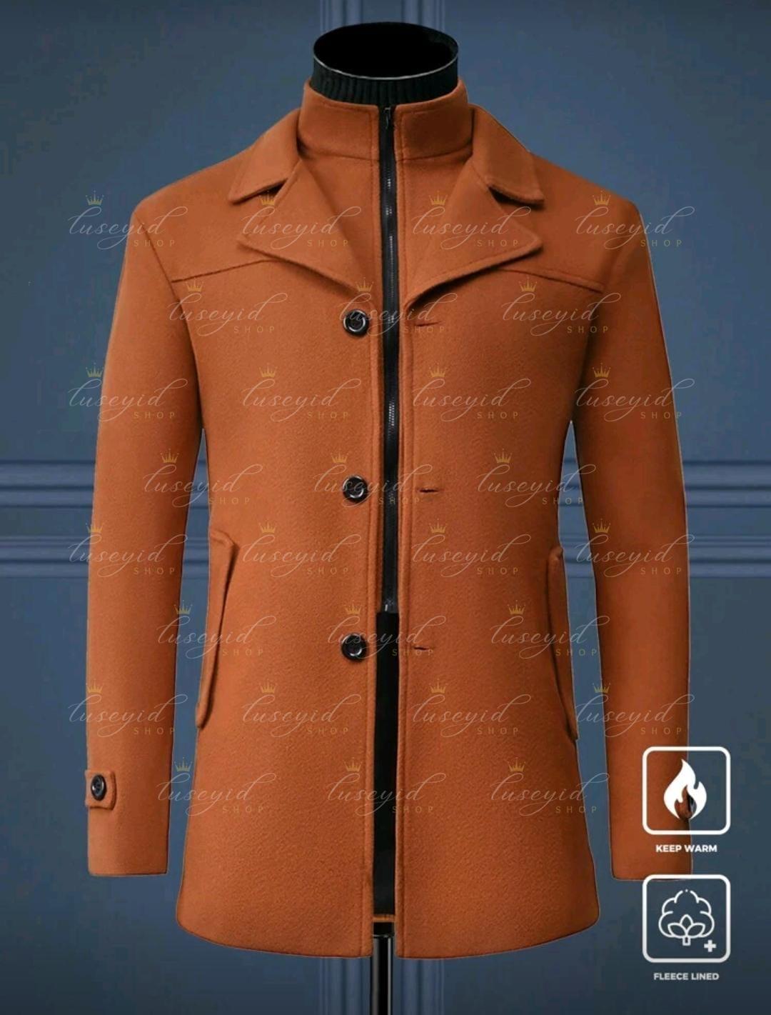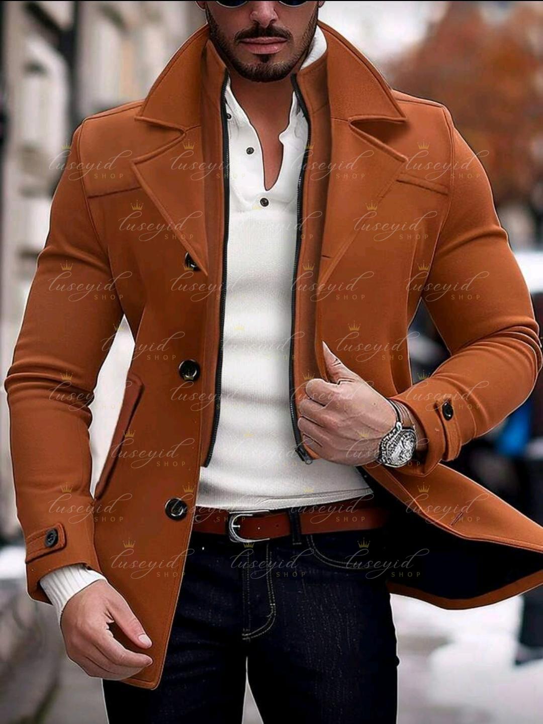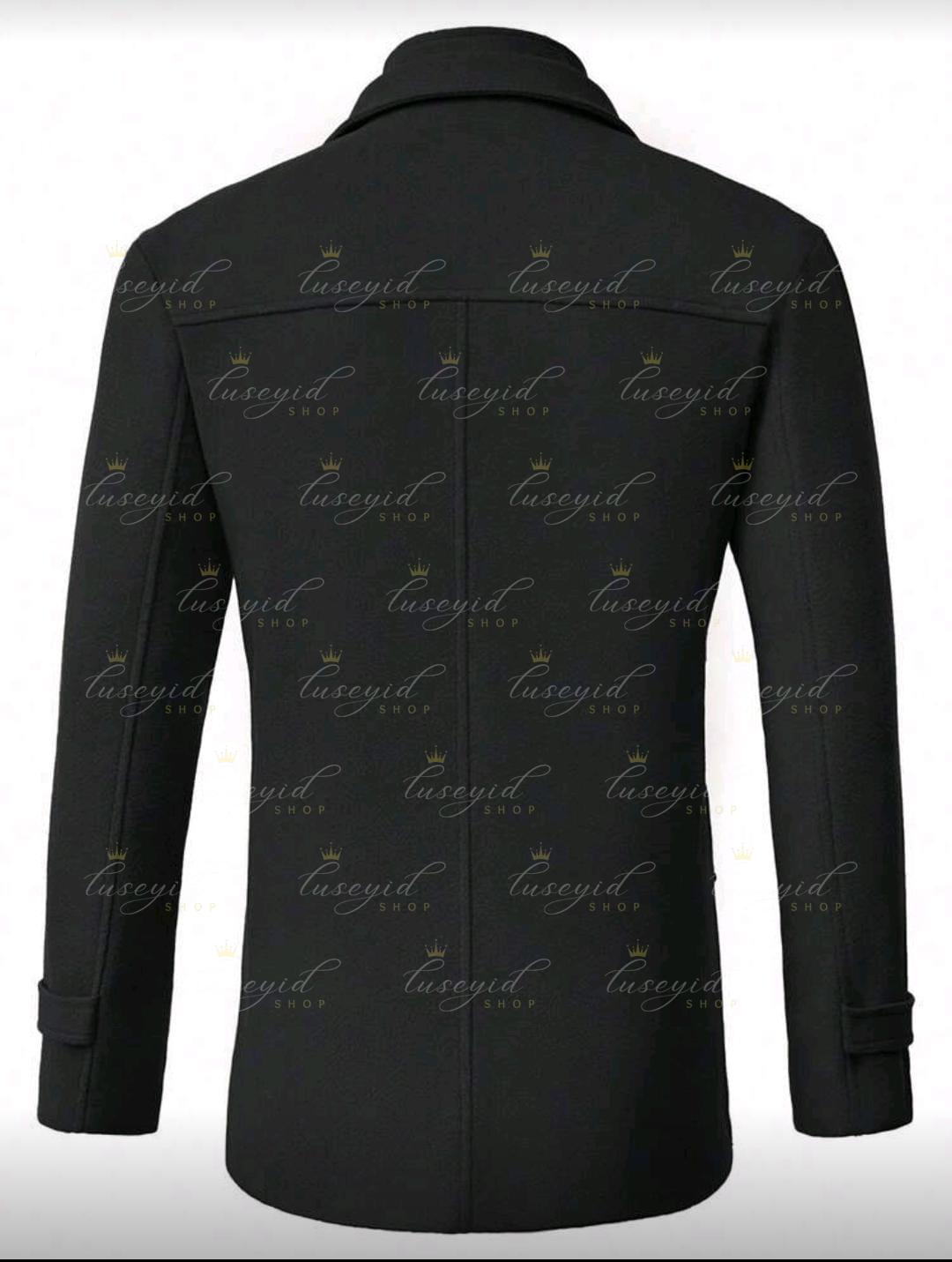 Manfinity Homme Chaqueta casual de mezcla de lana de manga larga con cuello de solapa, unicolor, para otoño/invierno