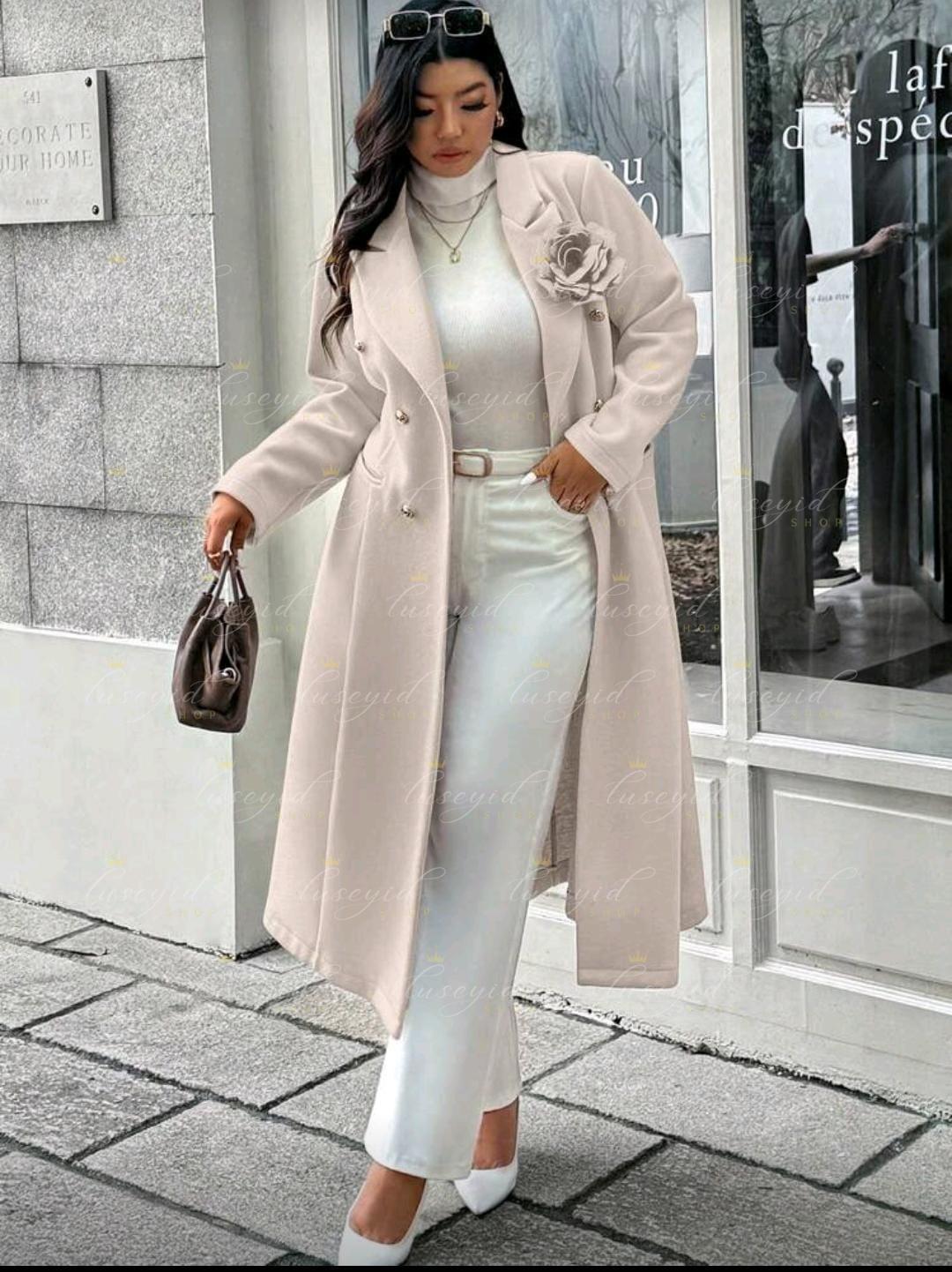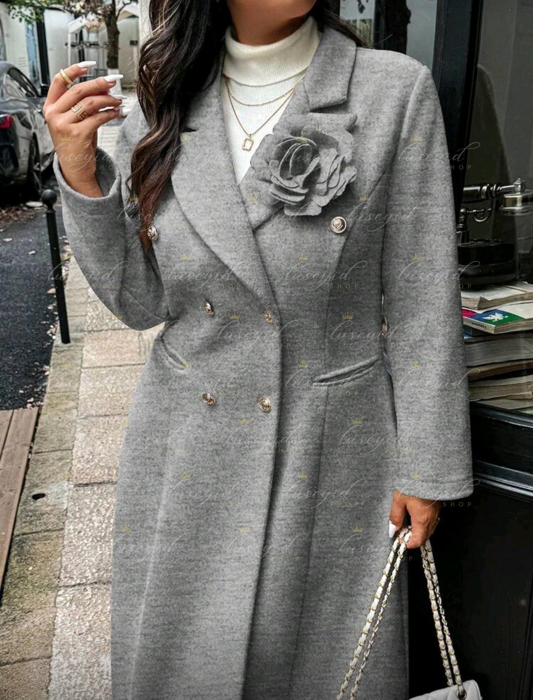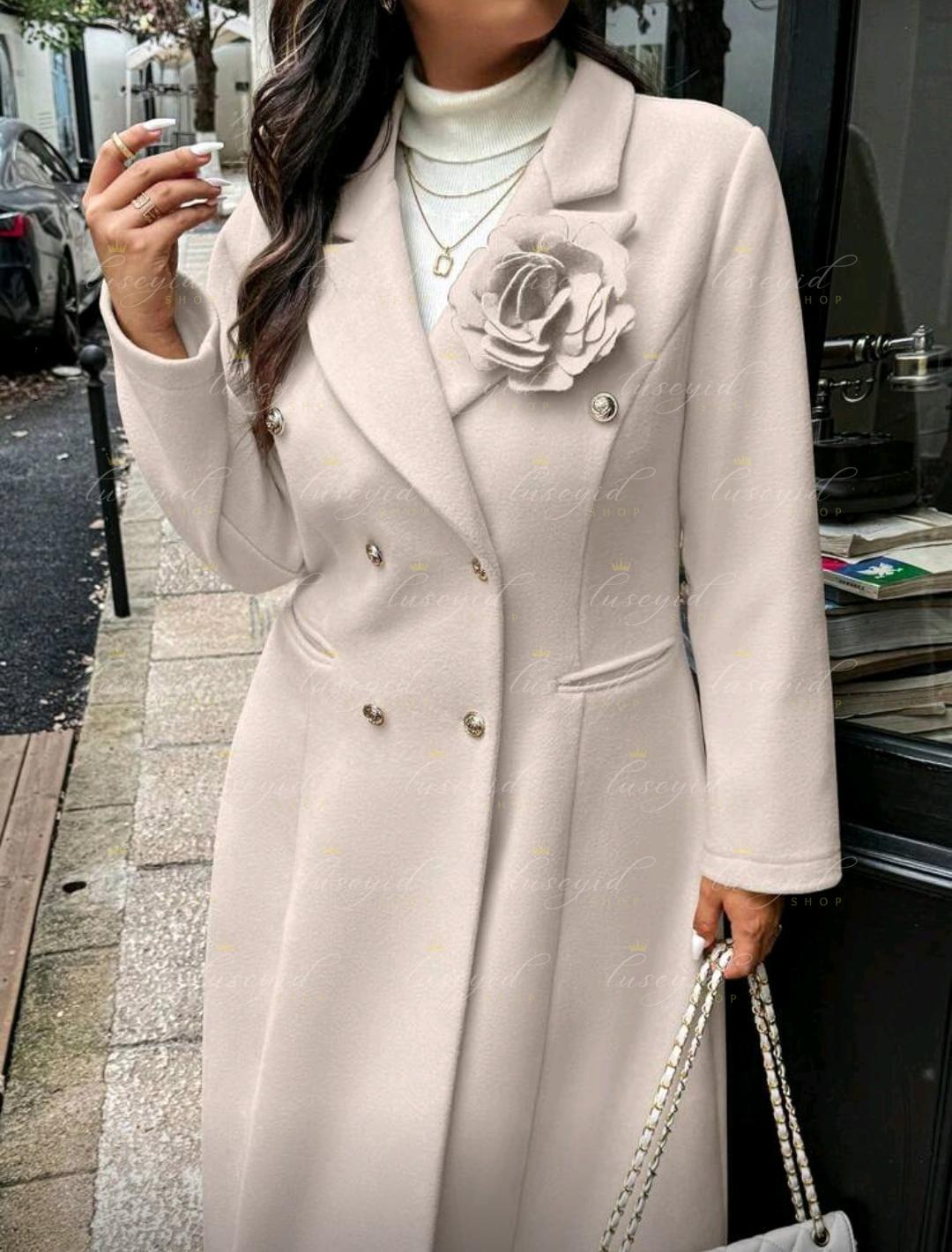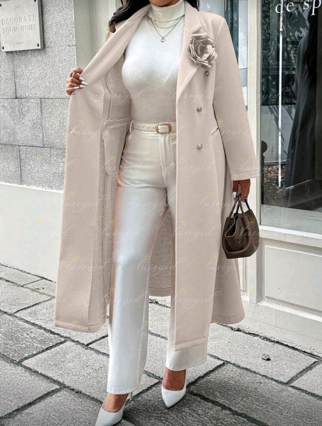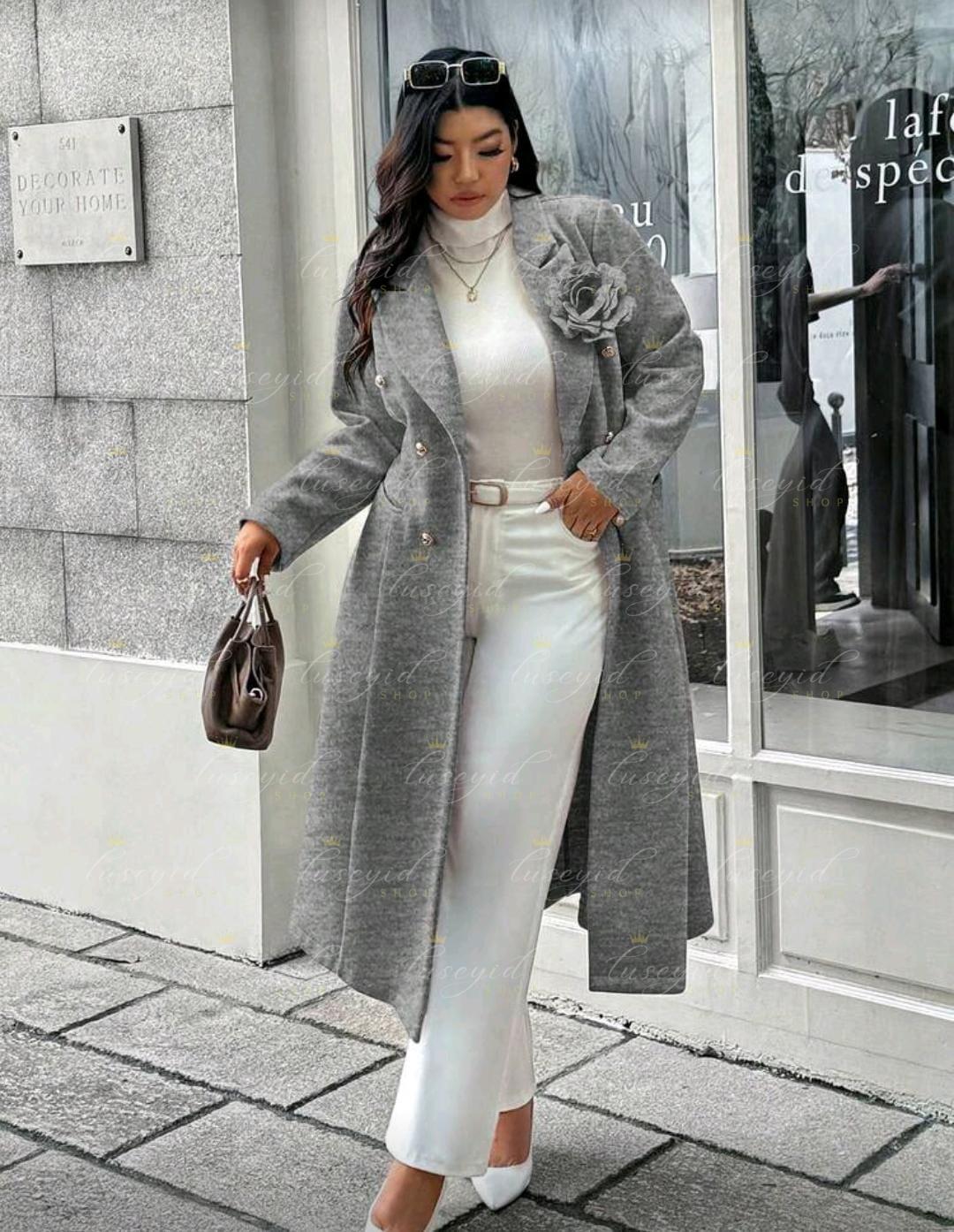 Chaqueta de mezcla de lana con decoración floral 3D de talla grande elegante