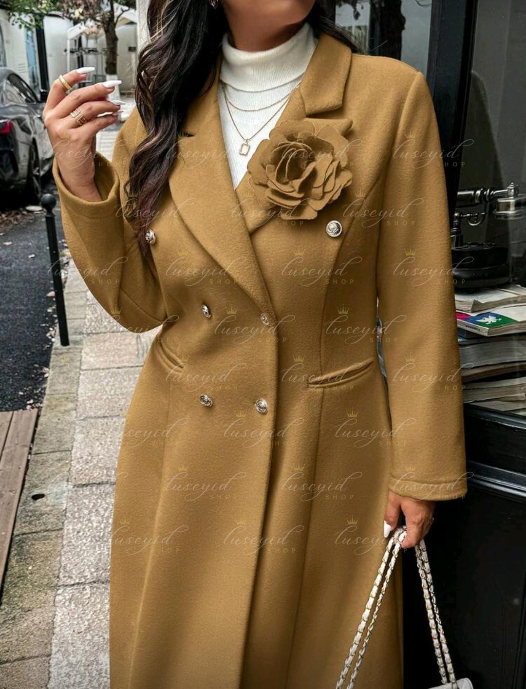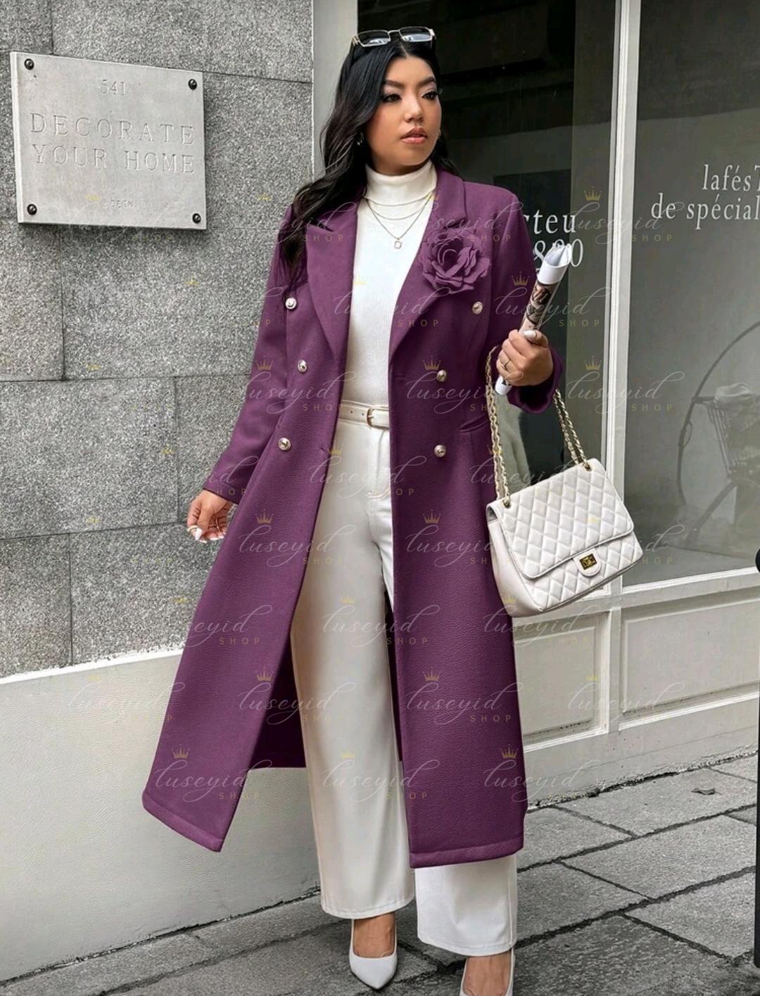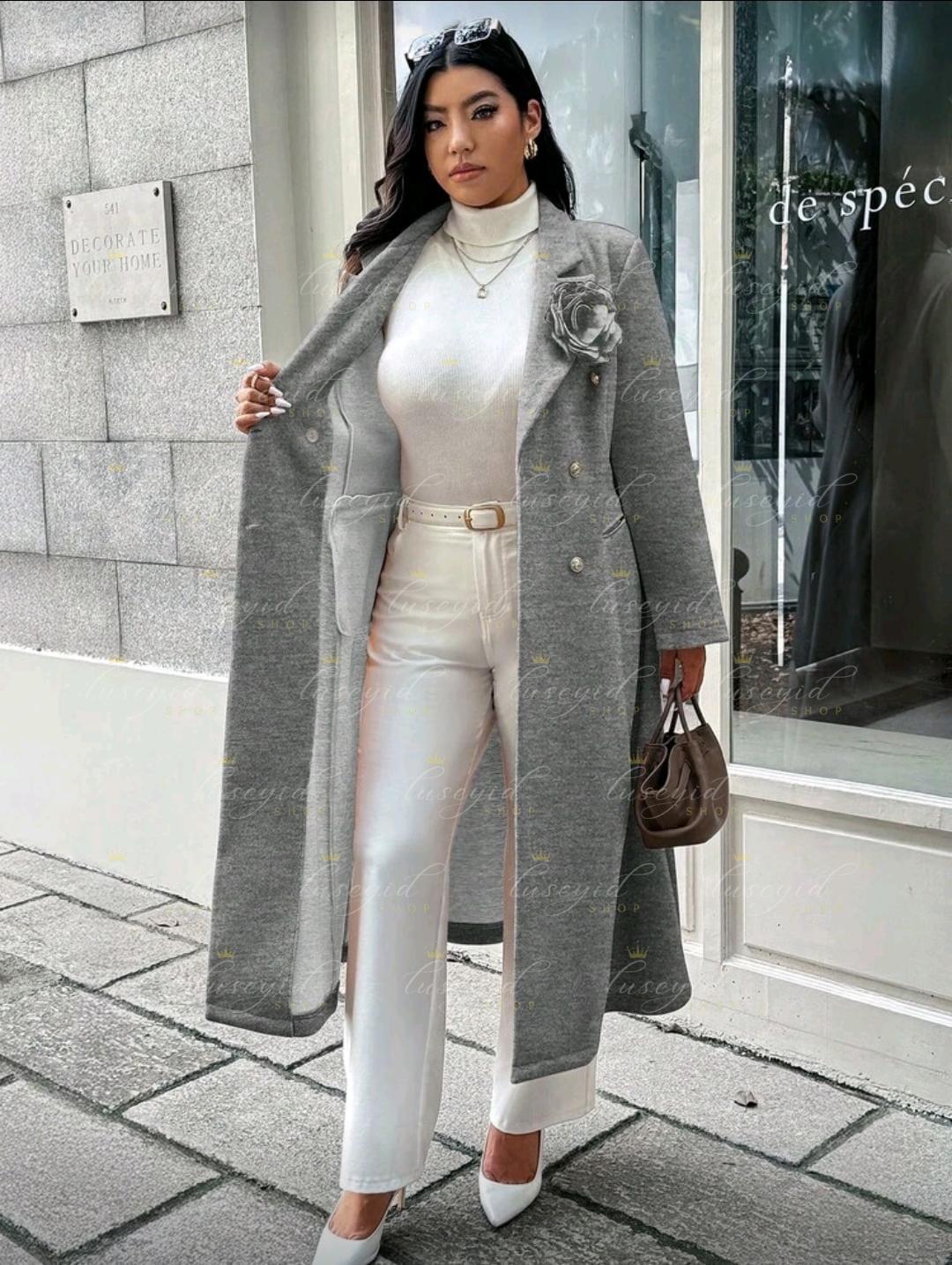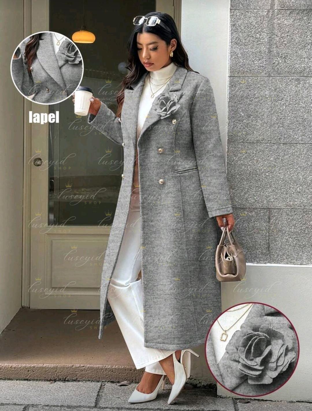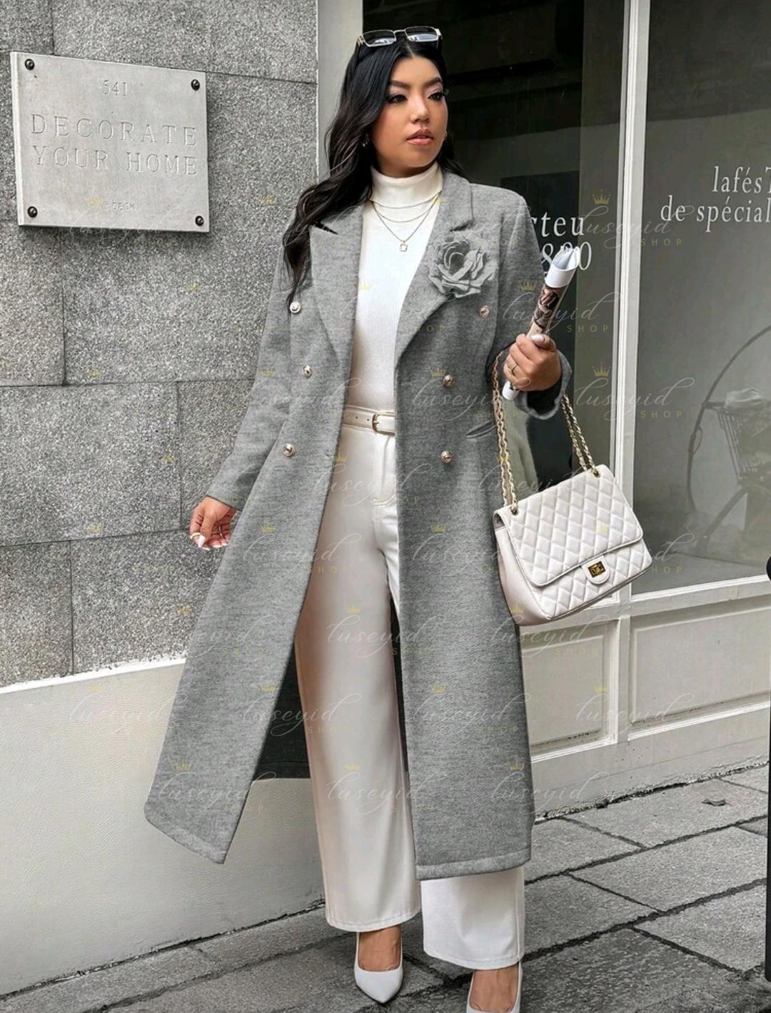 Chaqueta de mezcla de lana con decoración floral 3D de talla grande elegante