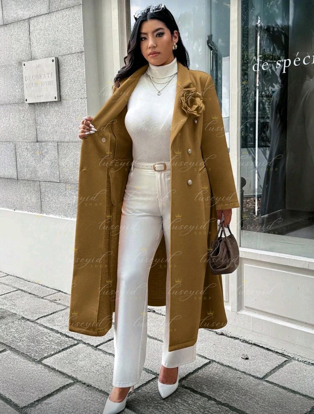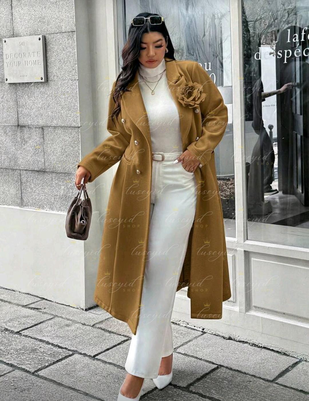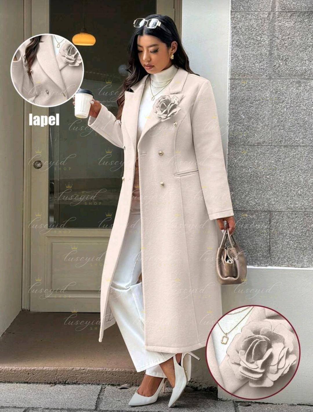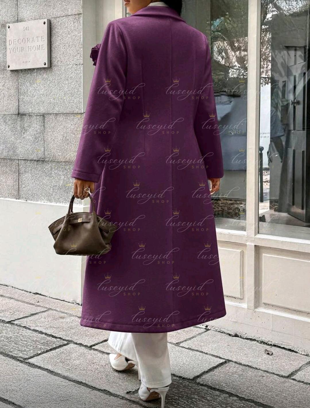 Chaqueta de mezcla de lana con decoración floral 3D de talla grande elegante