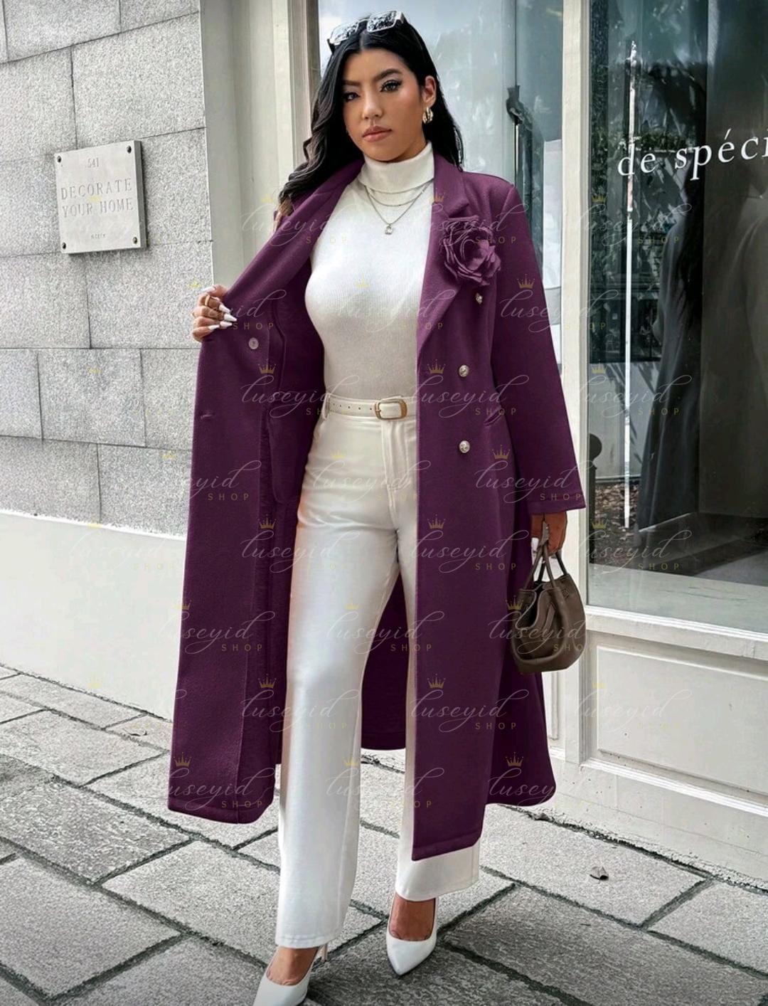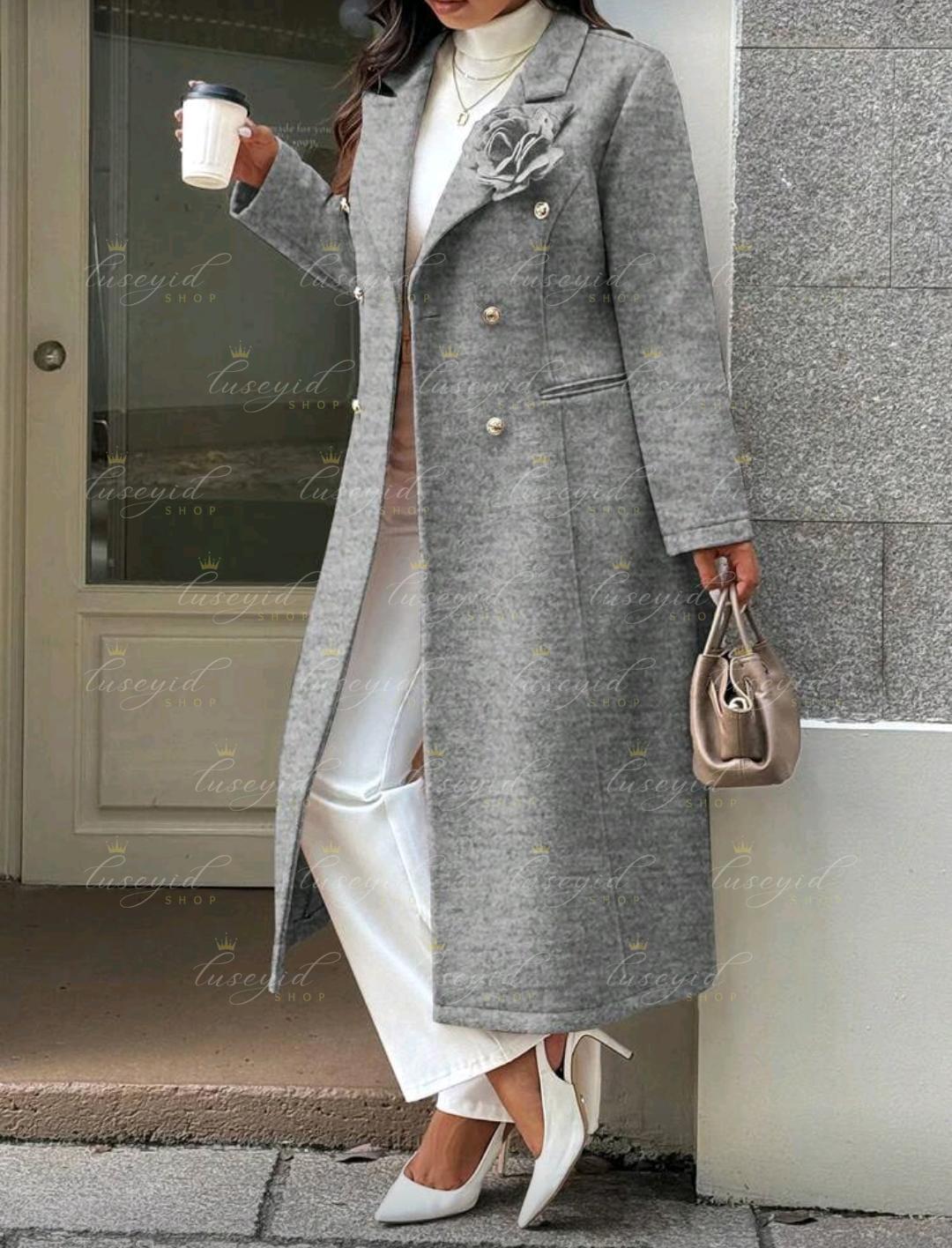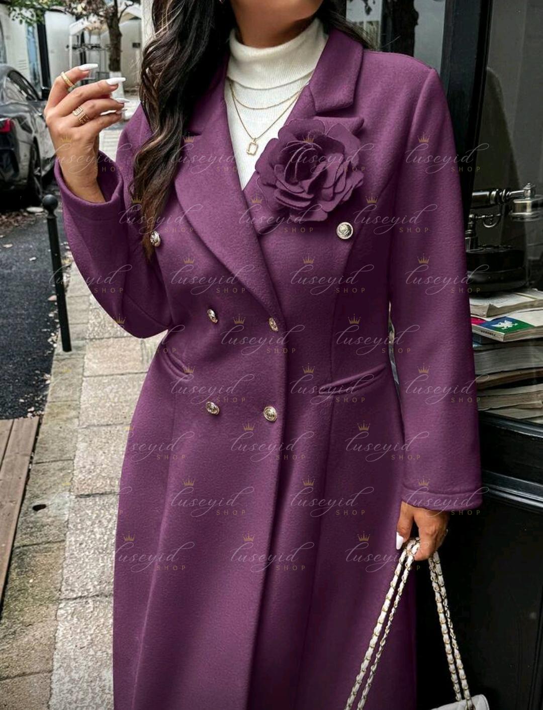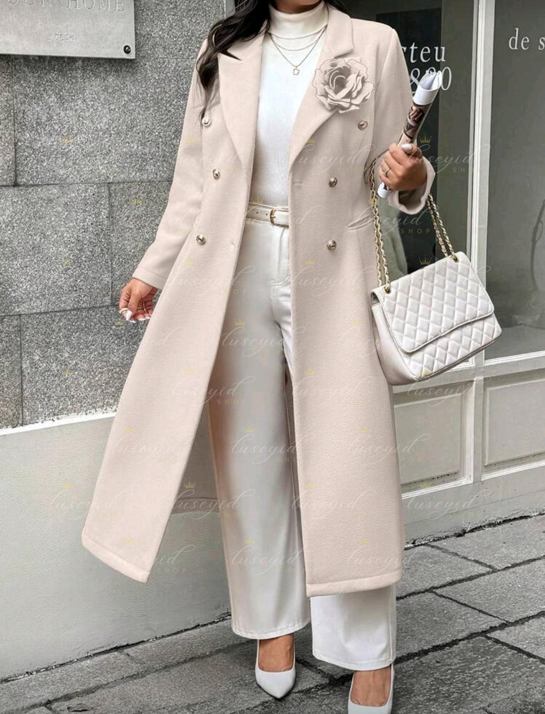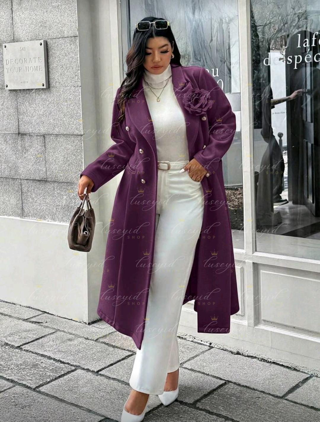 Chaqueta de mezcla de lana con decoración floral 3D de talla grande elegante