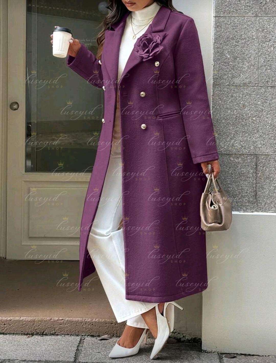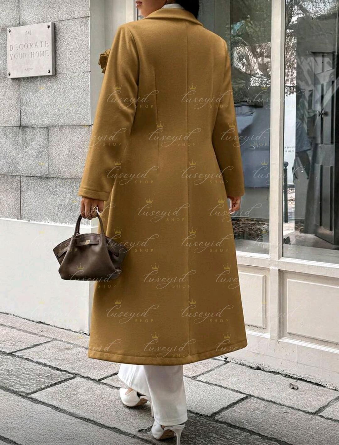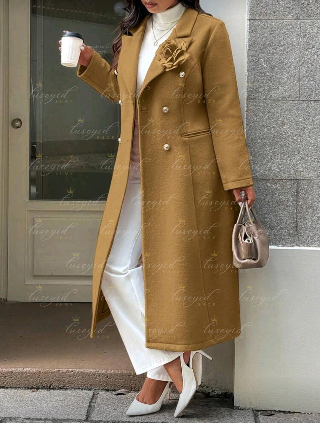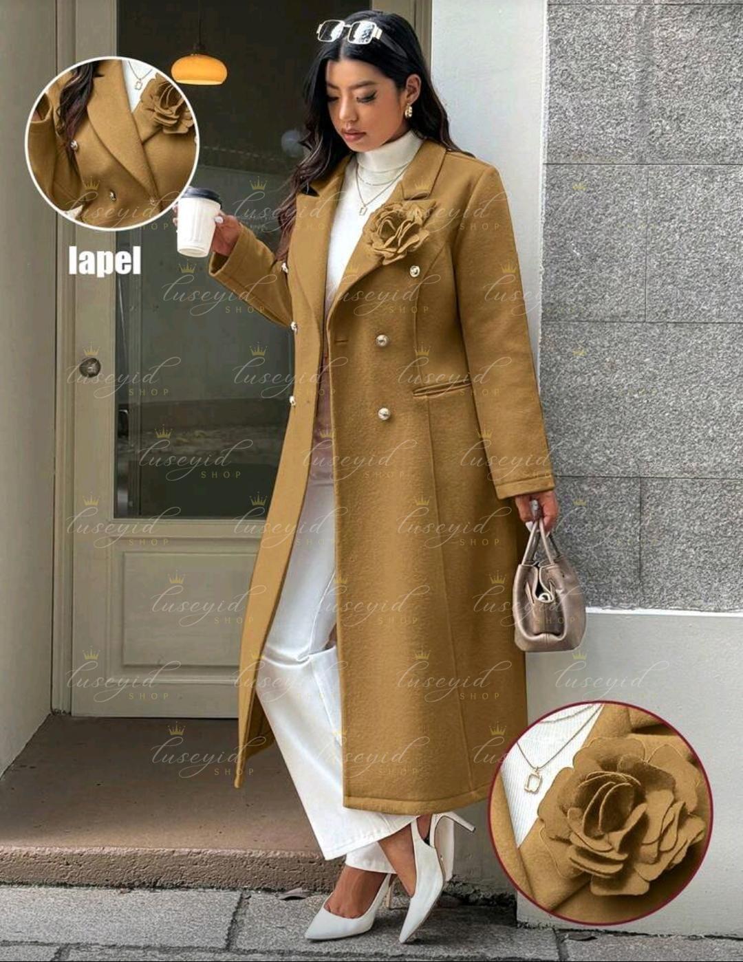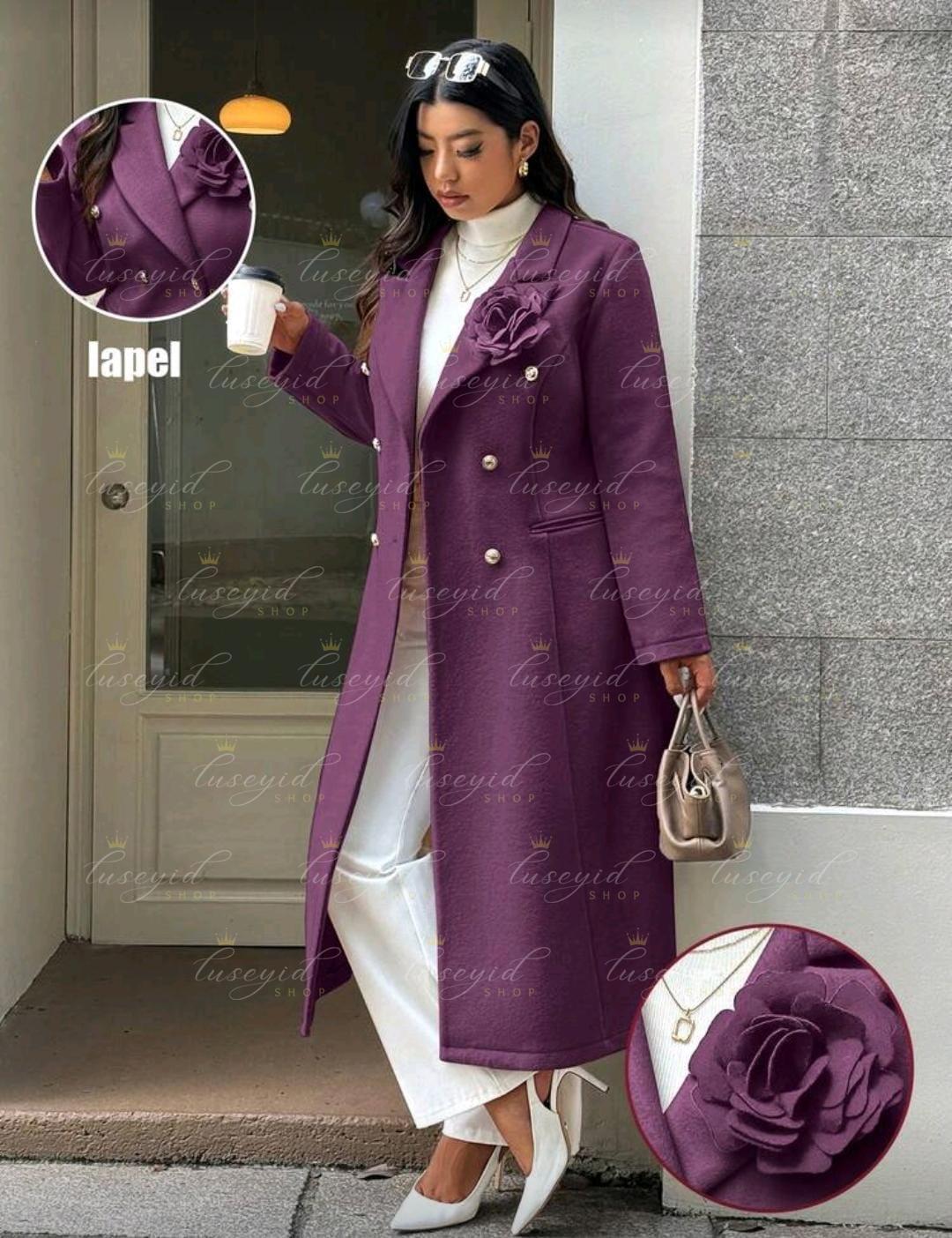 Chaqueta de mezcla de lana con decoración floral 3D de talla grande elegante