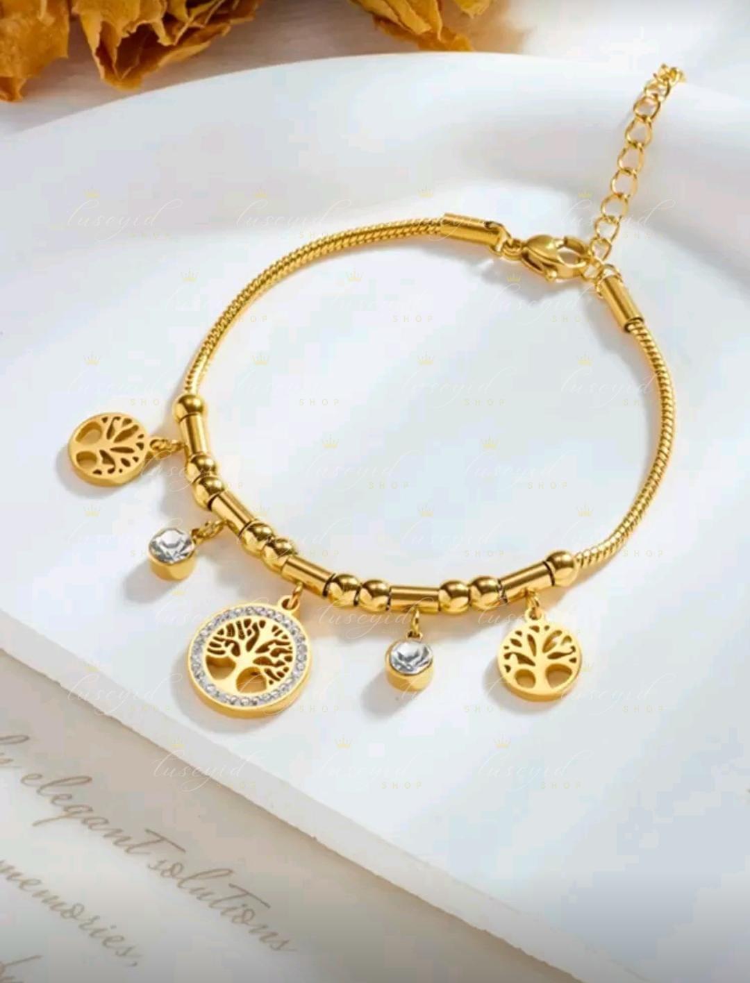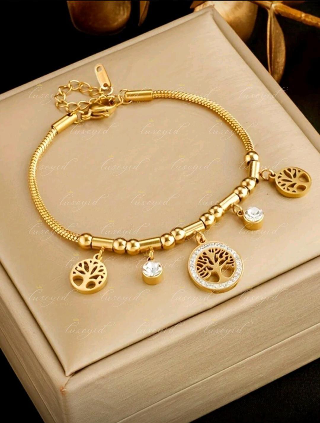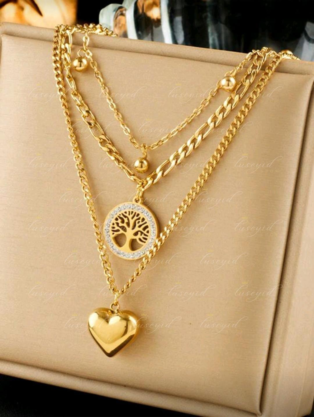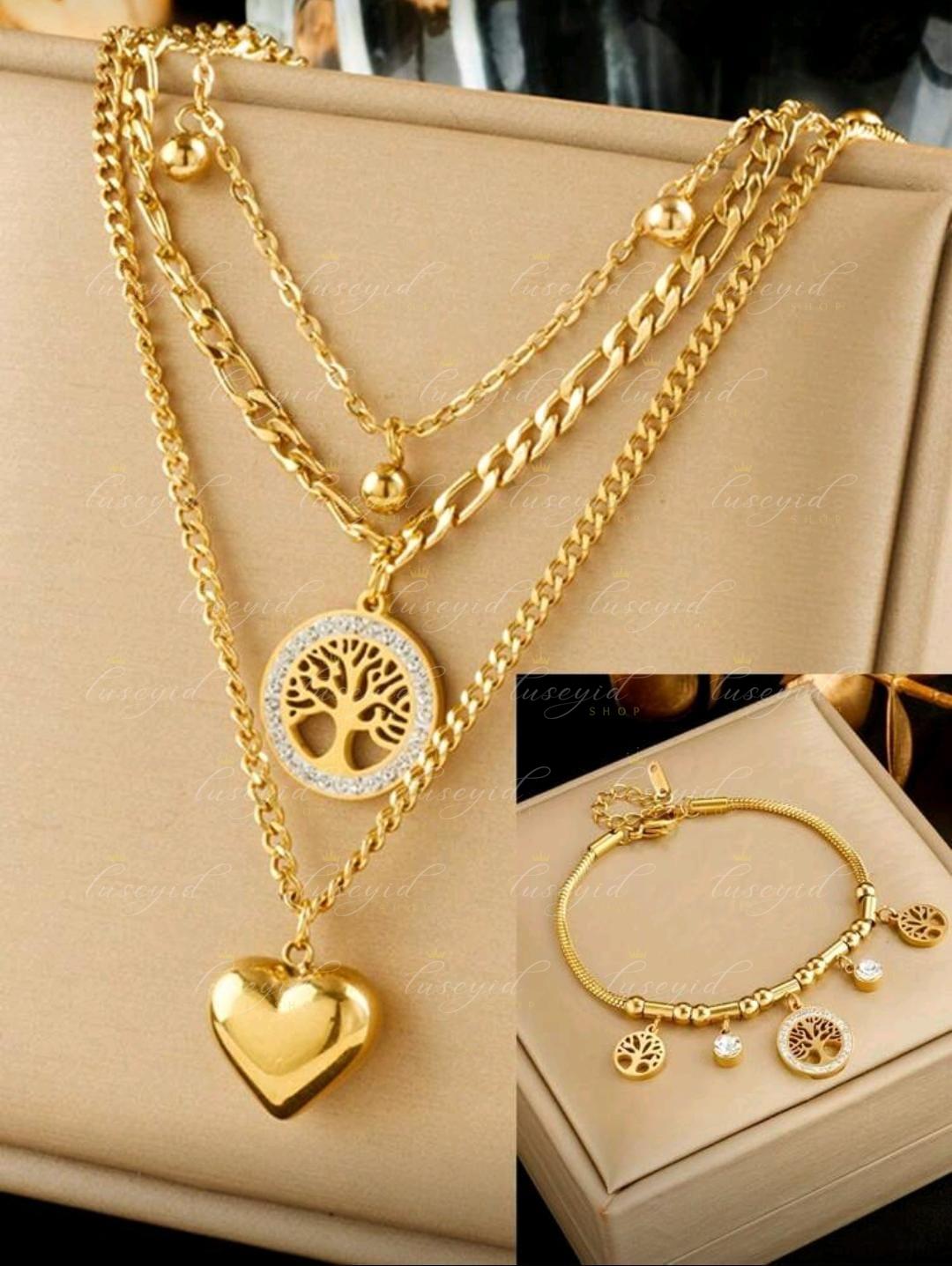 1 Set Collar con colgante de corazón de árbol de la vida con rhinestones + Pulsera, adecuado para ocasiones sociales y uso diario, set de regalo para mujeres