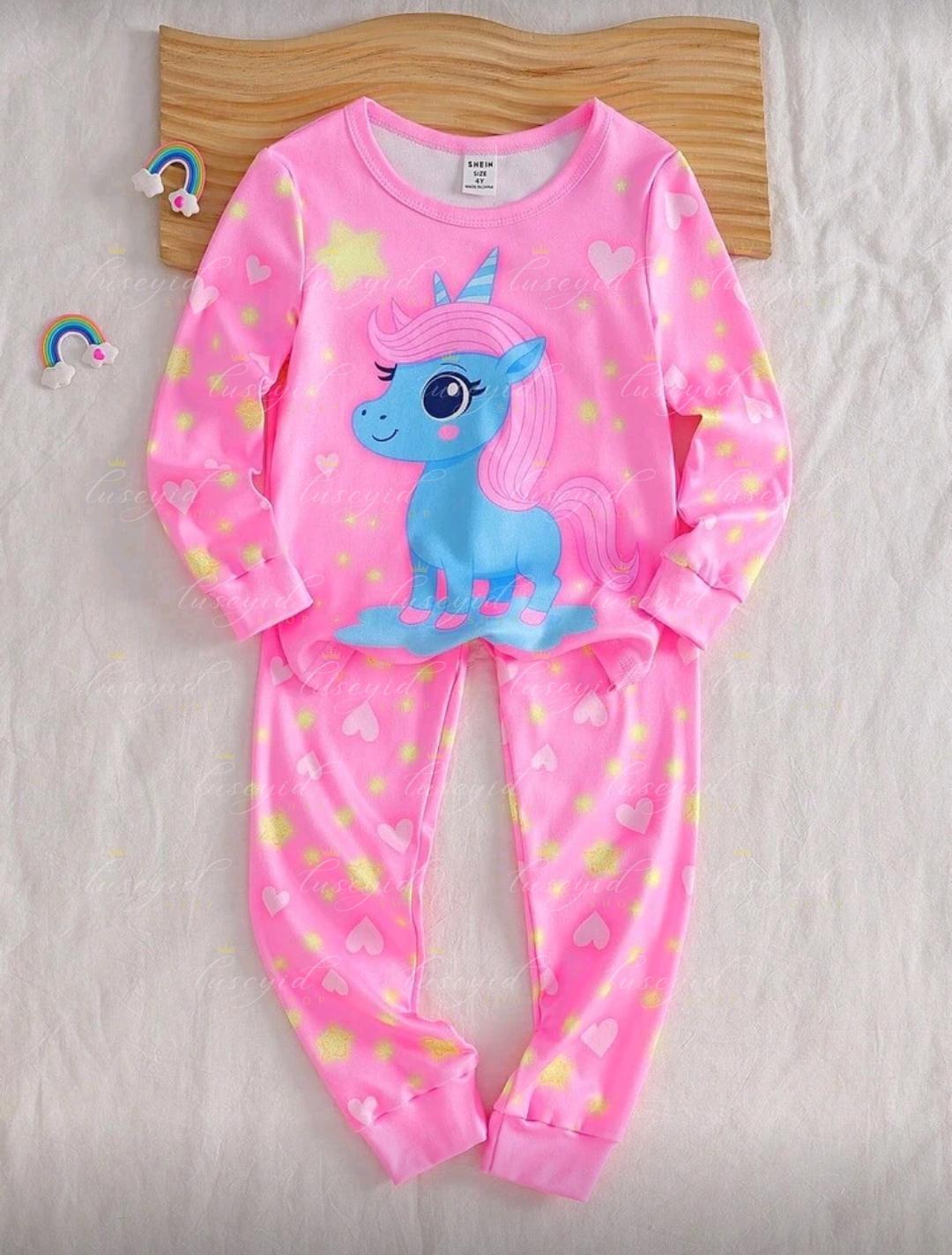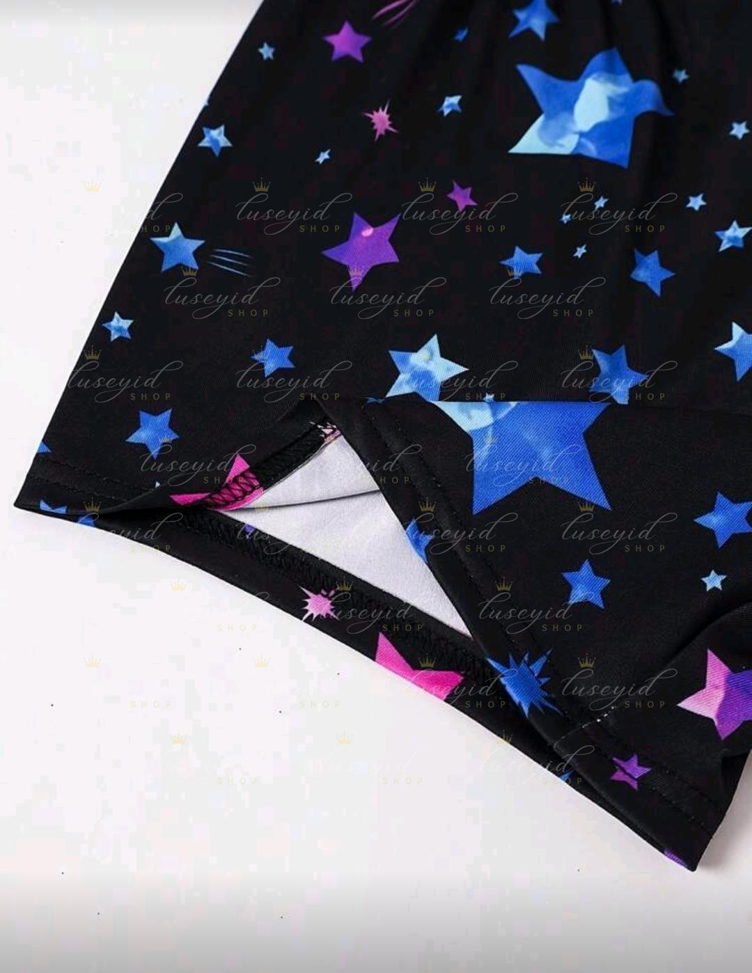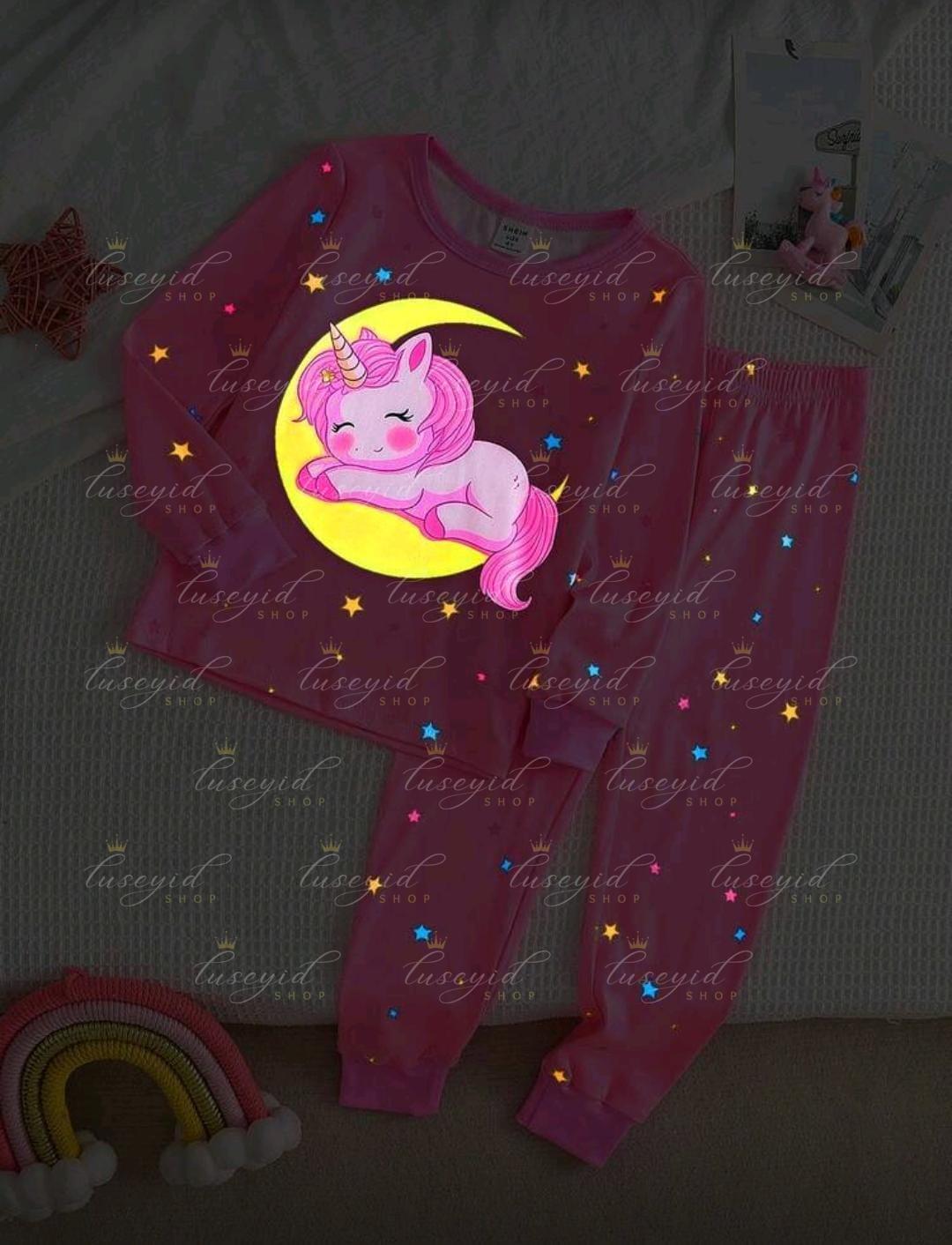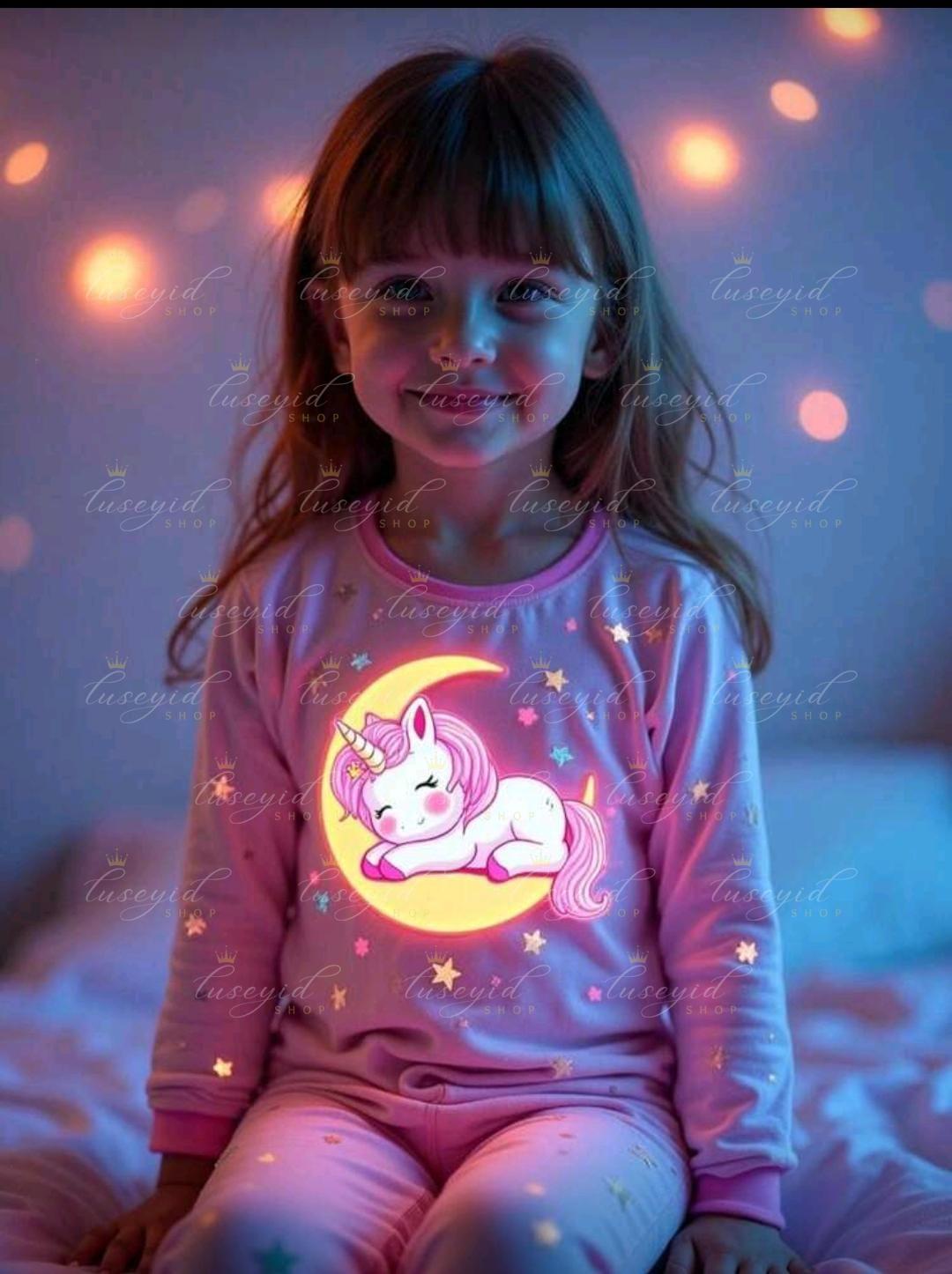 Conjunto casual de verano con Top de manga corta y shorts con estampado de unicornio y estrellas que brillan en la oscuridad para niñas preadolescentes