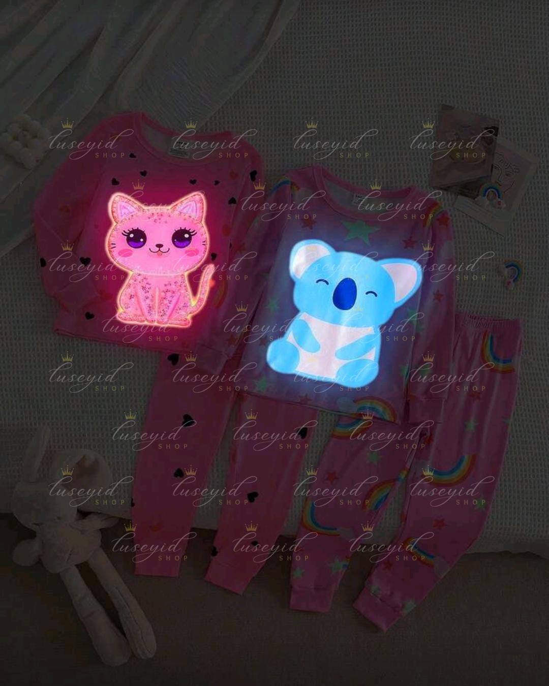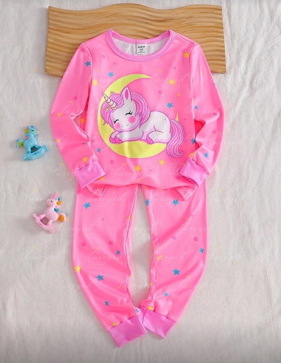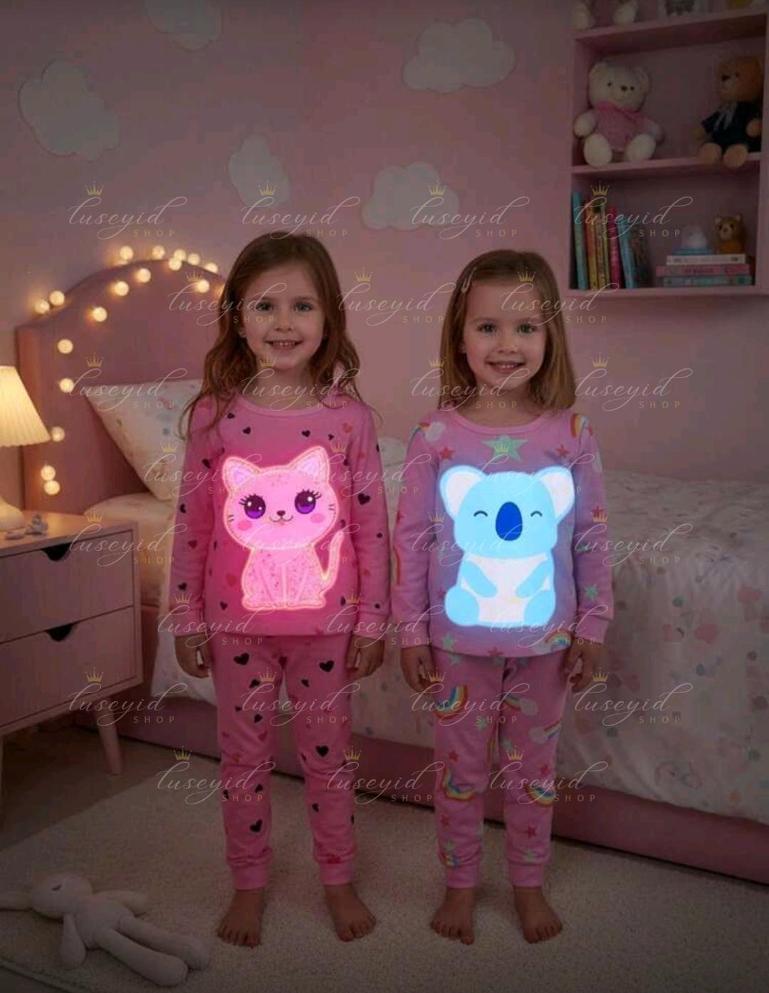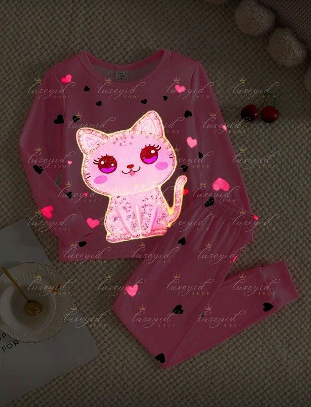 Conjunto casual de verano con Top de manga corta y shorts con estampado de unicornio y estrellas que brillan en la oscuridad para niñas preadolescentes