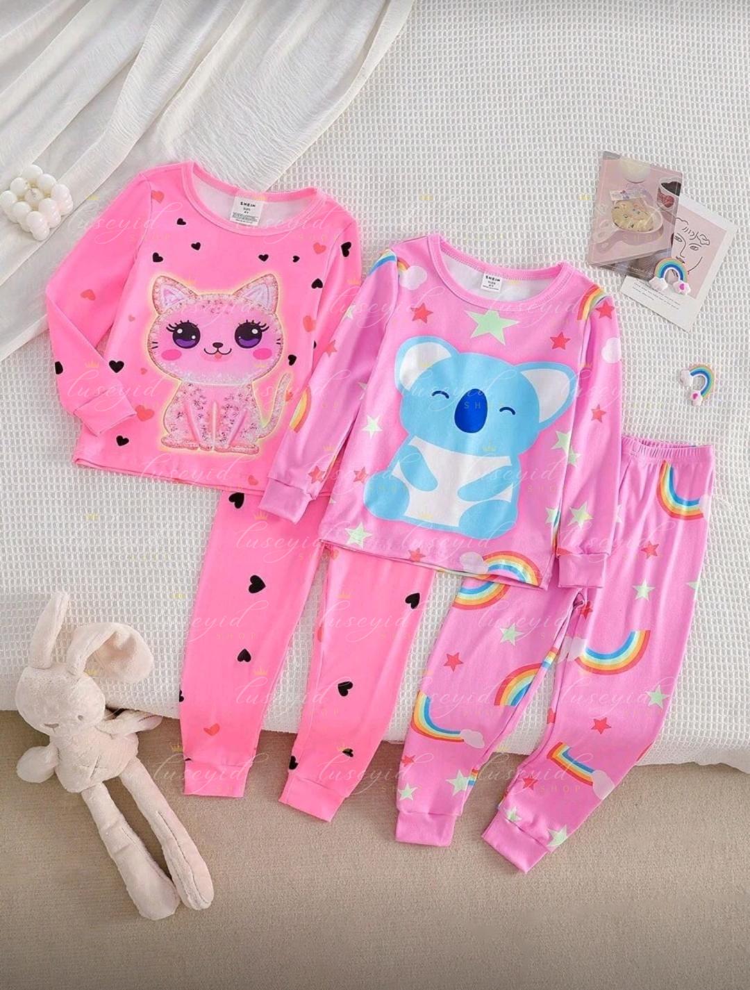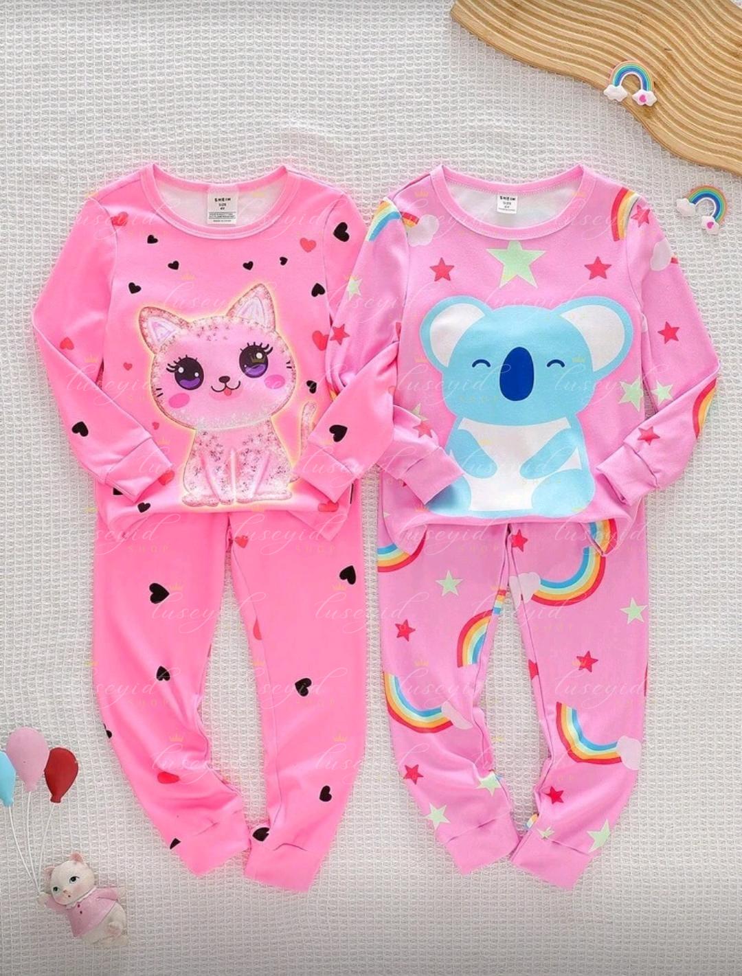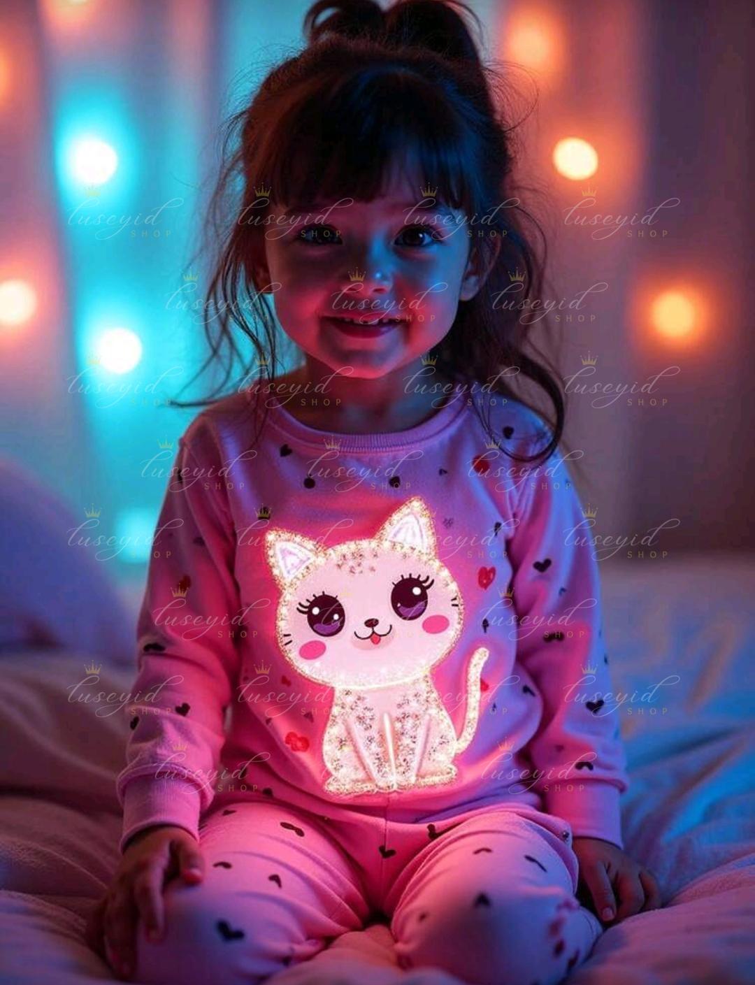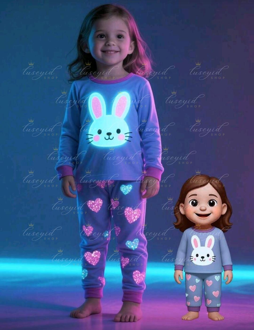 Conjunto casual de verano con Top de manga corta y shorts con estampado de unicornio y estrellas que brillan en la oscuridad para niñas preadolescentes