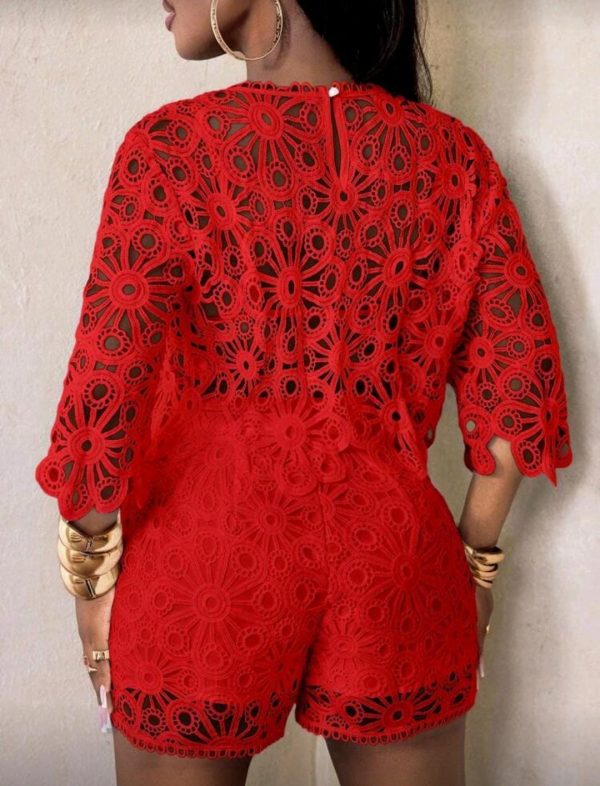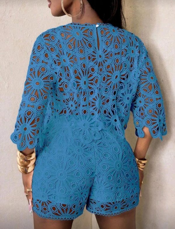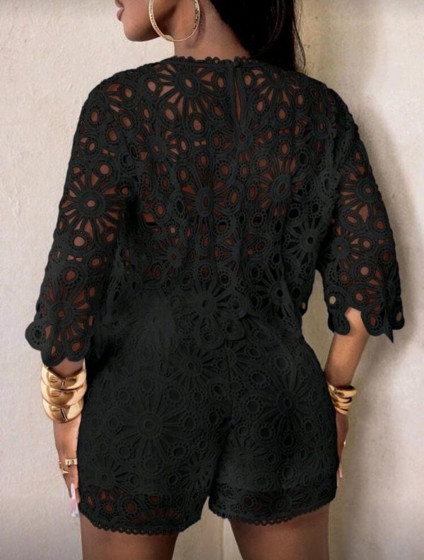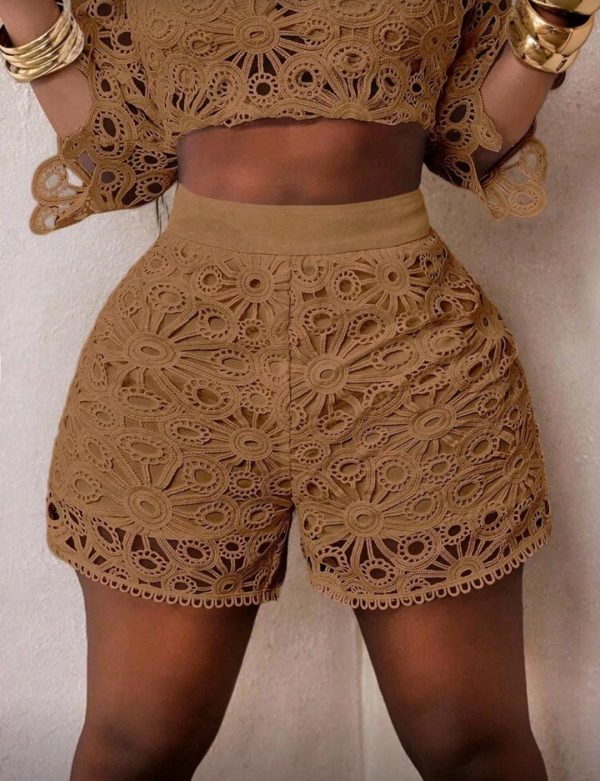 BamGleam Blusa de mujer de manga abullonada con aberturas y transparencias de encaje, blusa de punto de cuatro estaciones, elegante Top ajustada de cuello redondo