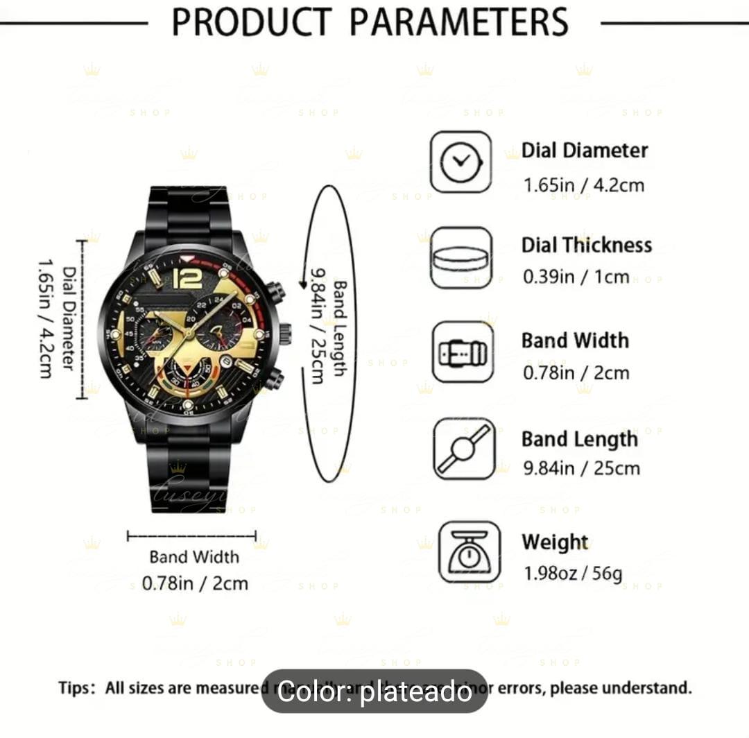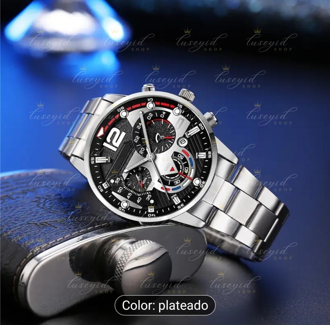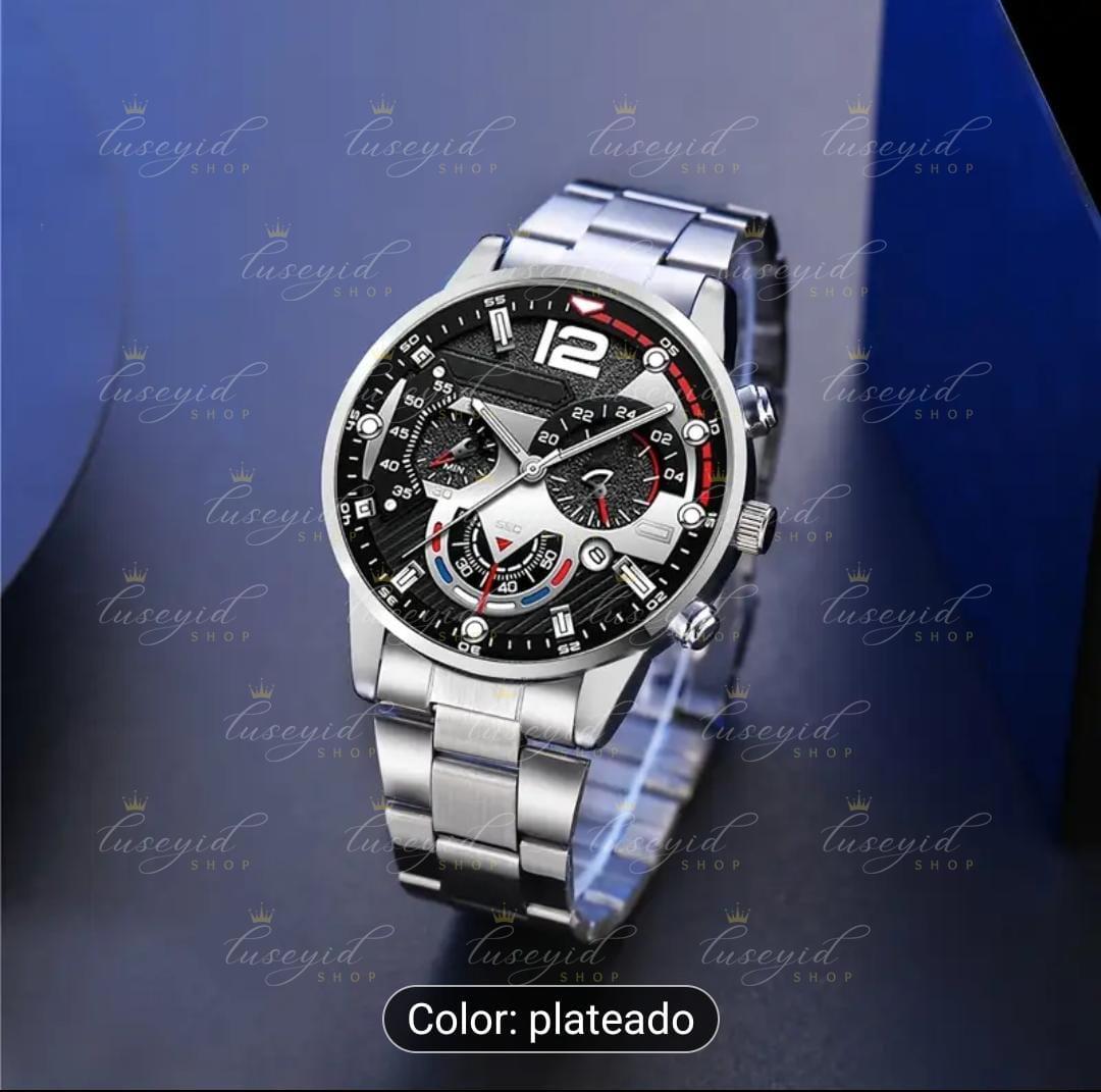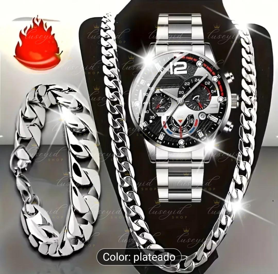 Conjunto de 3 piezas para hombre: Reloj deportivo de acero, pulsera y collar. El regalo perfecto para Navidad, Halloween o cumpleaños. Caja y correa de aleación, movimiento de cuarzo, funciona con pilas. Ideal para San Valentín, Navidad
