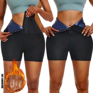 Mujeres corsé de entrenamiento de cintura con ganchos y pantalones cortos de sudor de sauna de cintura alta, pantalones cortos