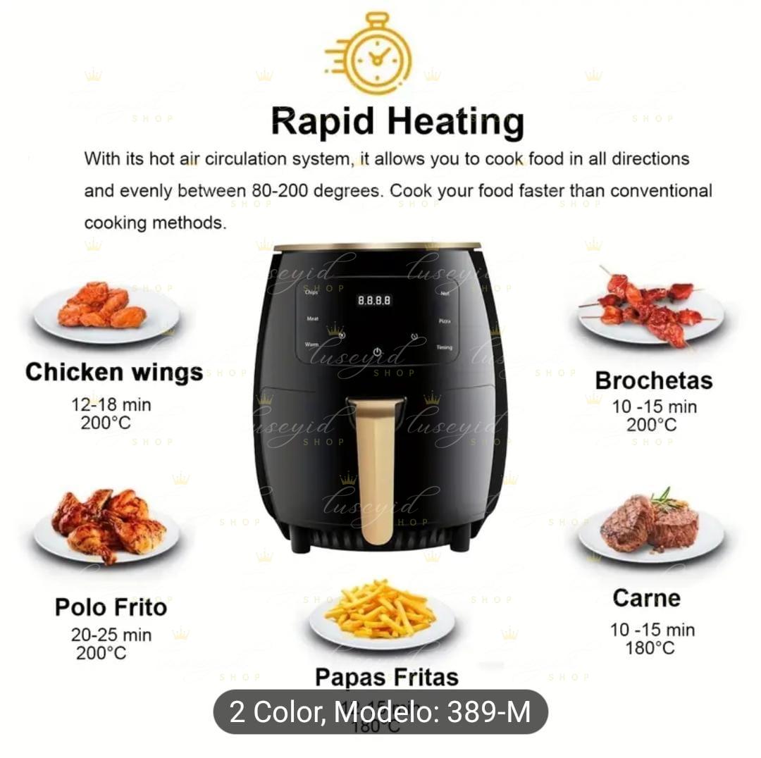 Freidora de Aire 4.5L Gran Capacidad 1400W Circulación de Aire Caliente Inteligente Automática Multifunción con Pantalla LED Sin Aceite para Hogar