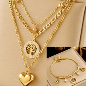 1 Set Collar con colgante de corazón de árbol de la vida con rhinestones + Pulsera, adecuado para ocasiones sociales