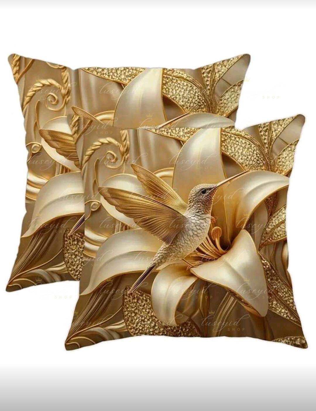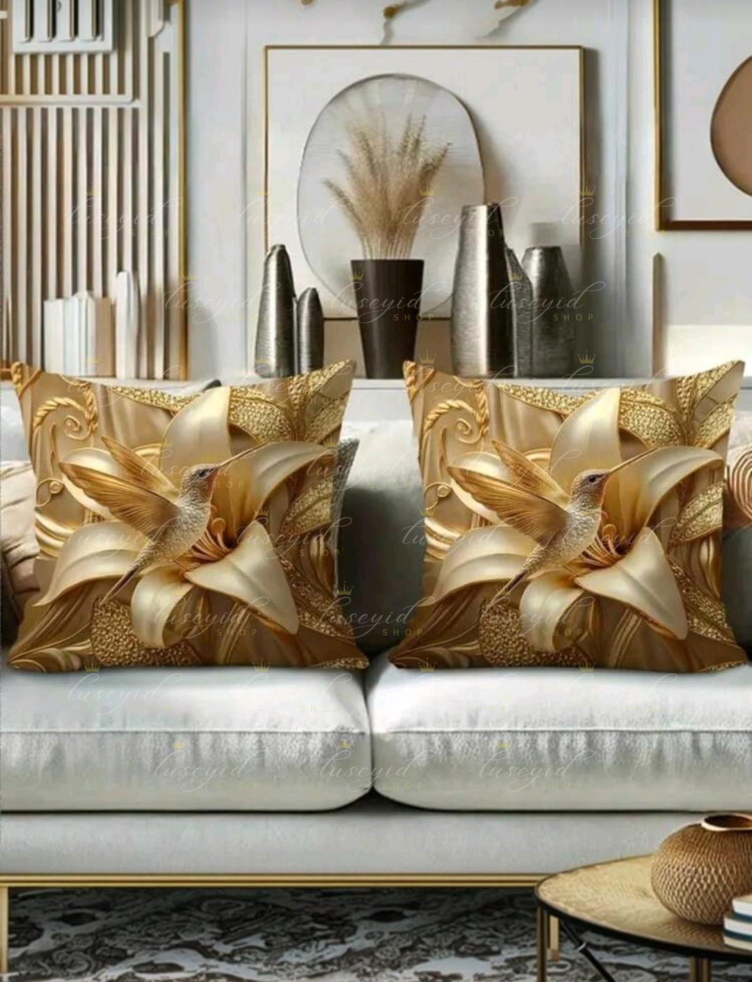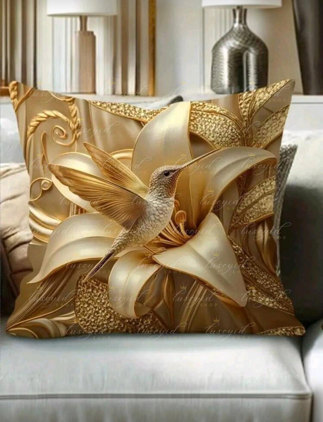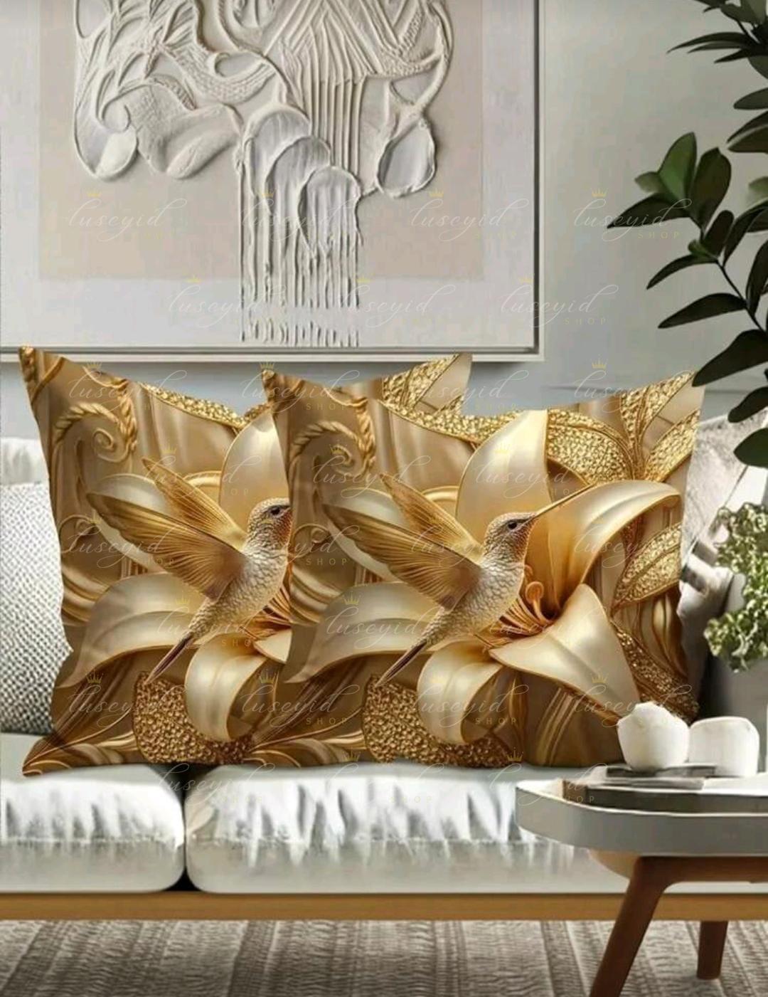 1/2/4 piezas Fundas de cojín contemporáneas con diseño de colibrí y flor de lirio gigante, lavables a máquina, 100% poliéster, funda de cojín decorativa y suave para sala de estar, dormitorio, sofá, impresión unilateral, sin relleno