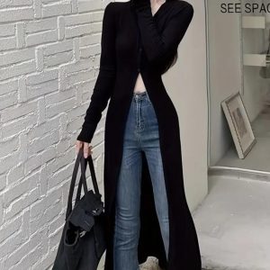 Cárdigan Largo Negro Elegante para Mujer – Cuello en V, Manga Larga, Abotonado, Suave y Cálido, Perfecto para Primavera/Otoño, Prenda