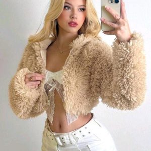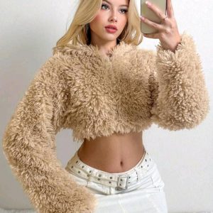 Chaqueta de cárdigan de cuello redondo acortada de manga larga para mujer