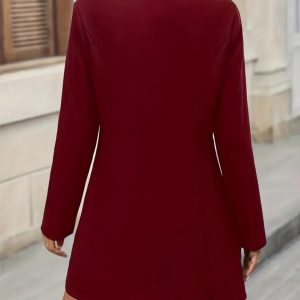 Abrigo Elegante de Mujer en Rojo Burdeos – Chaqueta Larga Ajustada para Todas las Estaciones con Cuello Blanco y Botones