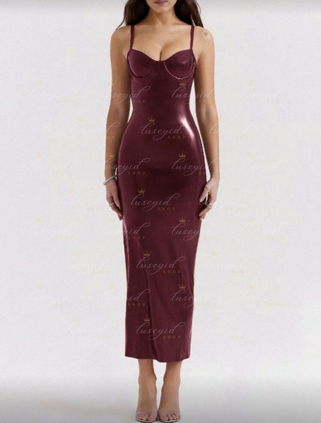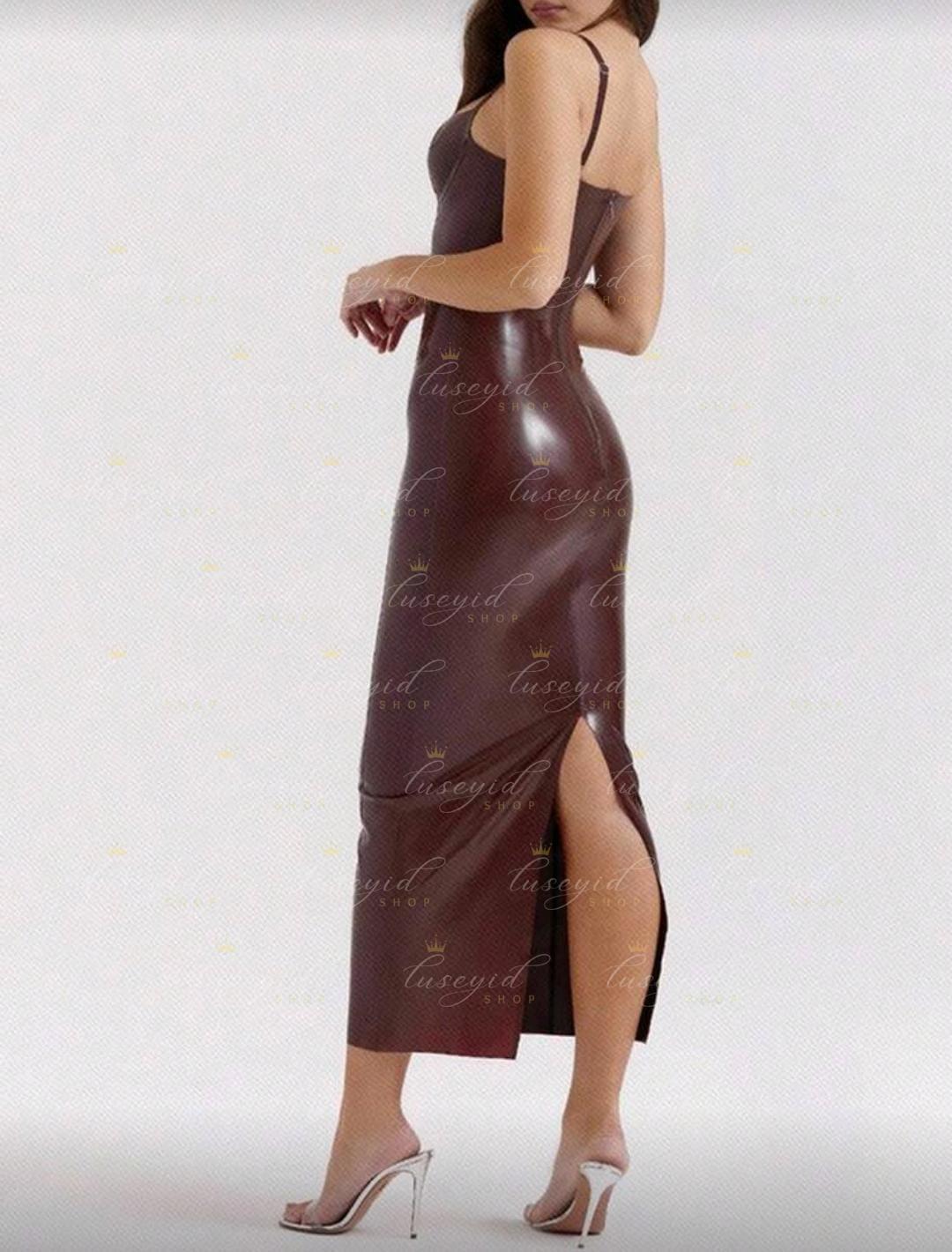 SHEIN BAE Vestido corset minimalista y sexy de color café sólido, adecuado para cóctel, cita romántica, vestido interior para otoño/invierno, reunión, fiesta, discoteca, Halloween, Navidad