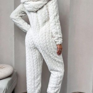 1 pieza Mono de una sola pieza con capucha con cremallera frontal, de unicolor y textura esponjosa, para otoño e
