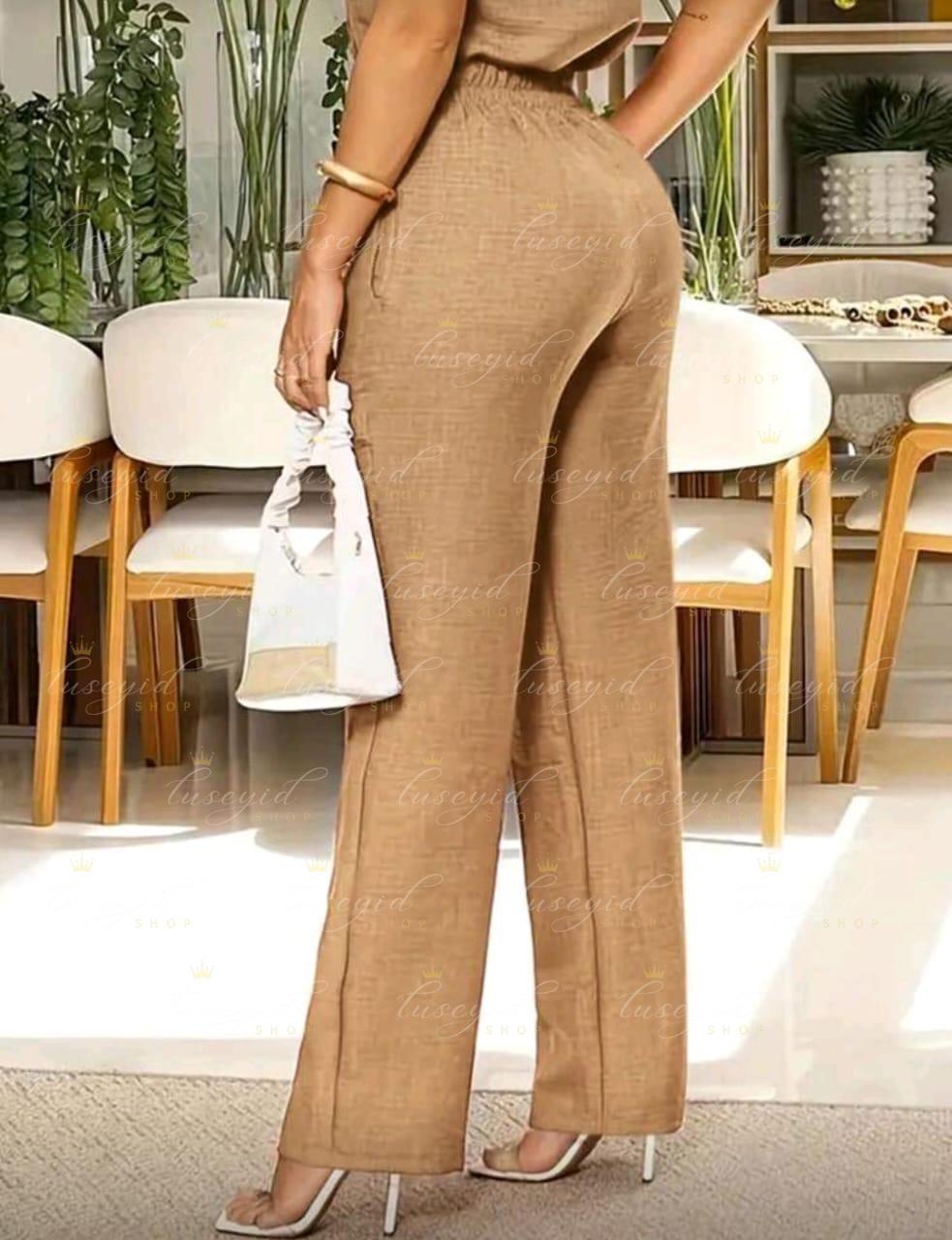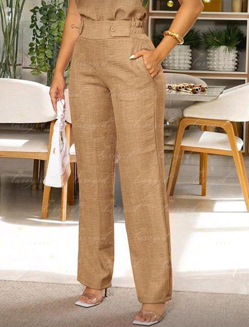 Pantalones elegantes y casuales de moda para mujer con bolsillos en diagonal y detalles de botones, adecuados para el trayecto