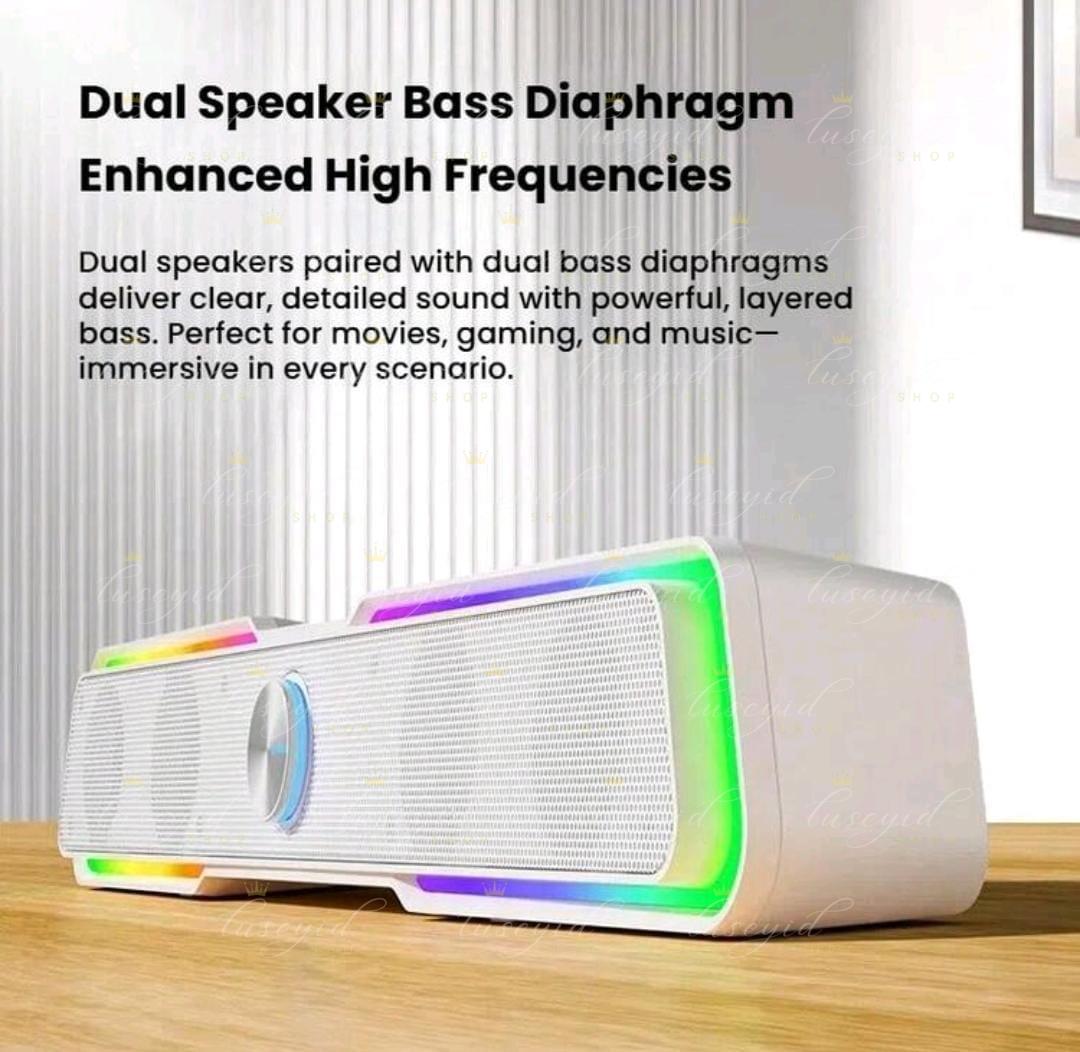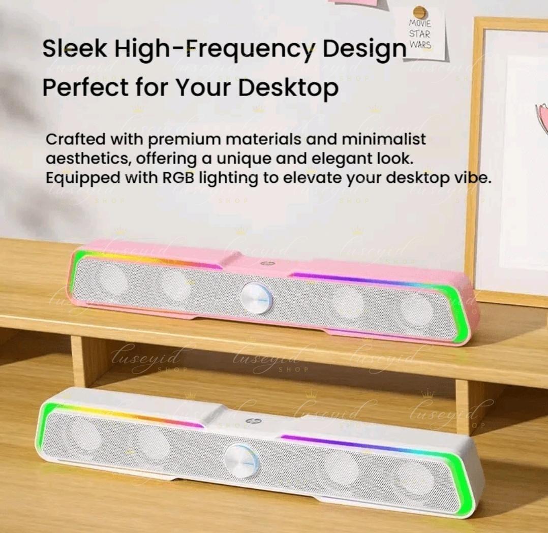 HP Altavoces para computadora DHE-6002S Efectos de iluminación geniales Efectos de iluminación dinámicos Modos duales con cable y Bluetooth Operación táctil Perillas separadas Graves potentes Amplia compatibilidad Negro