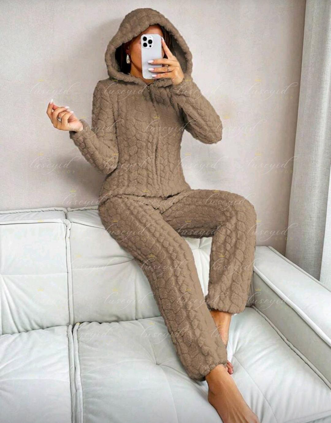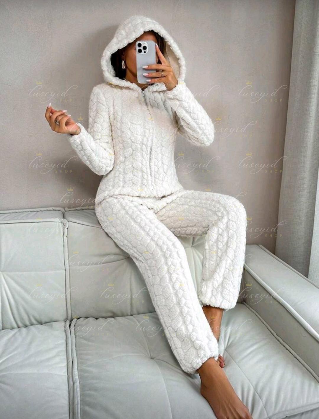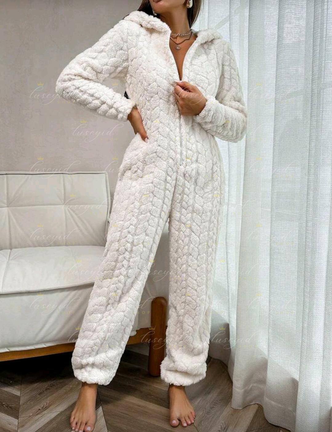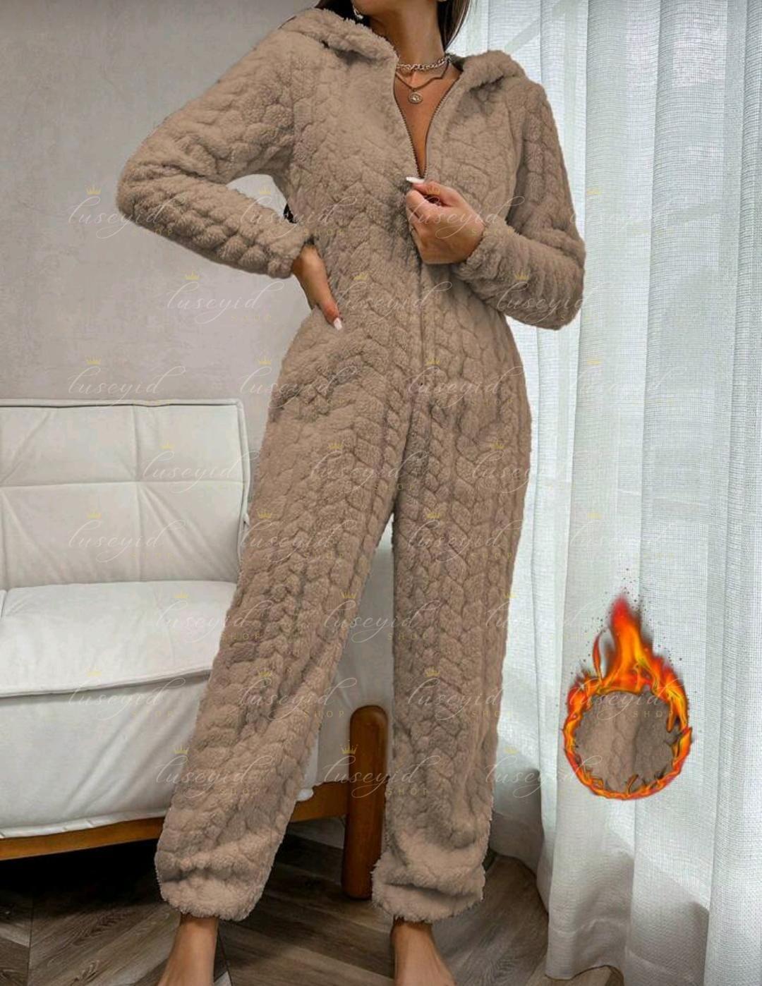 1 pieza Mono de una sola pieza con capucha con cremallera frontal, de unicolor y textura esponjosa, para otoño e invierno, atuendo acogedor