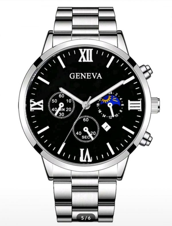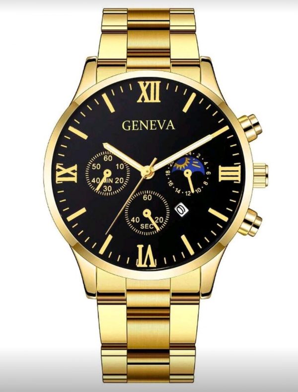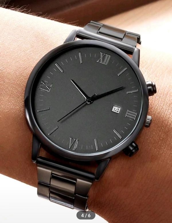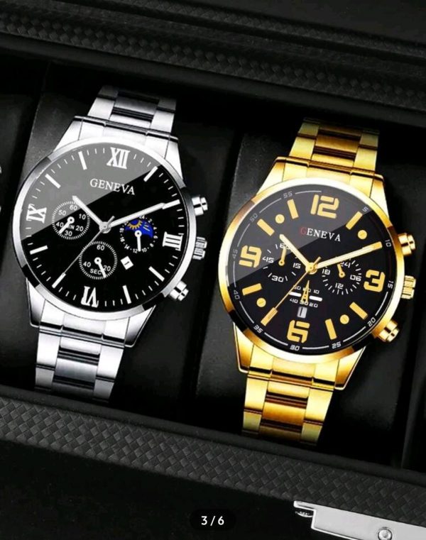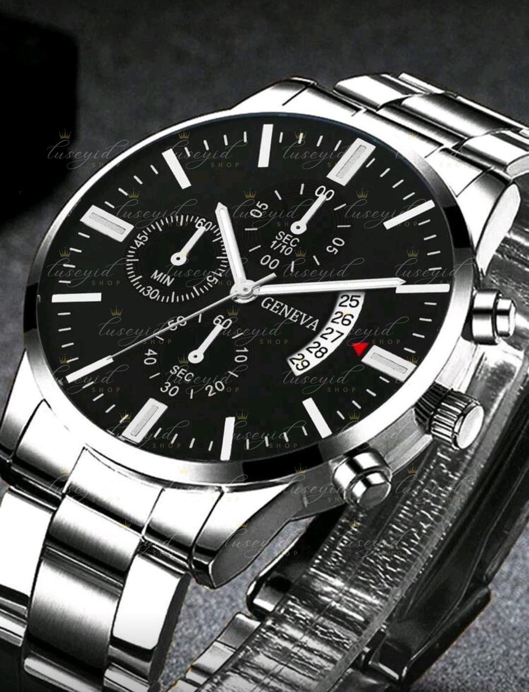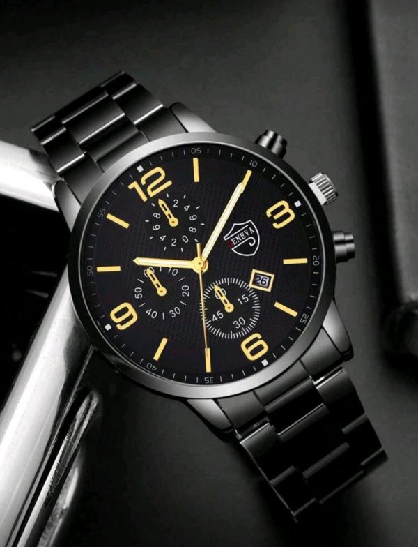 Set de 3 relojes de cuarzo casuales y de lujo para hombres – Esfera redonda de moda, función de fecha, caja de aleación y correa de acero inoxidable – Regalo perfecto para hombres
