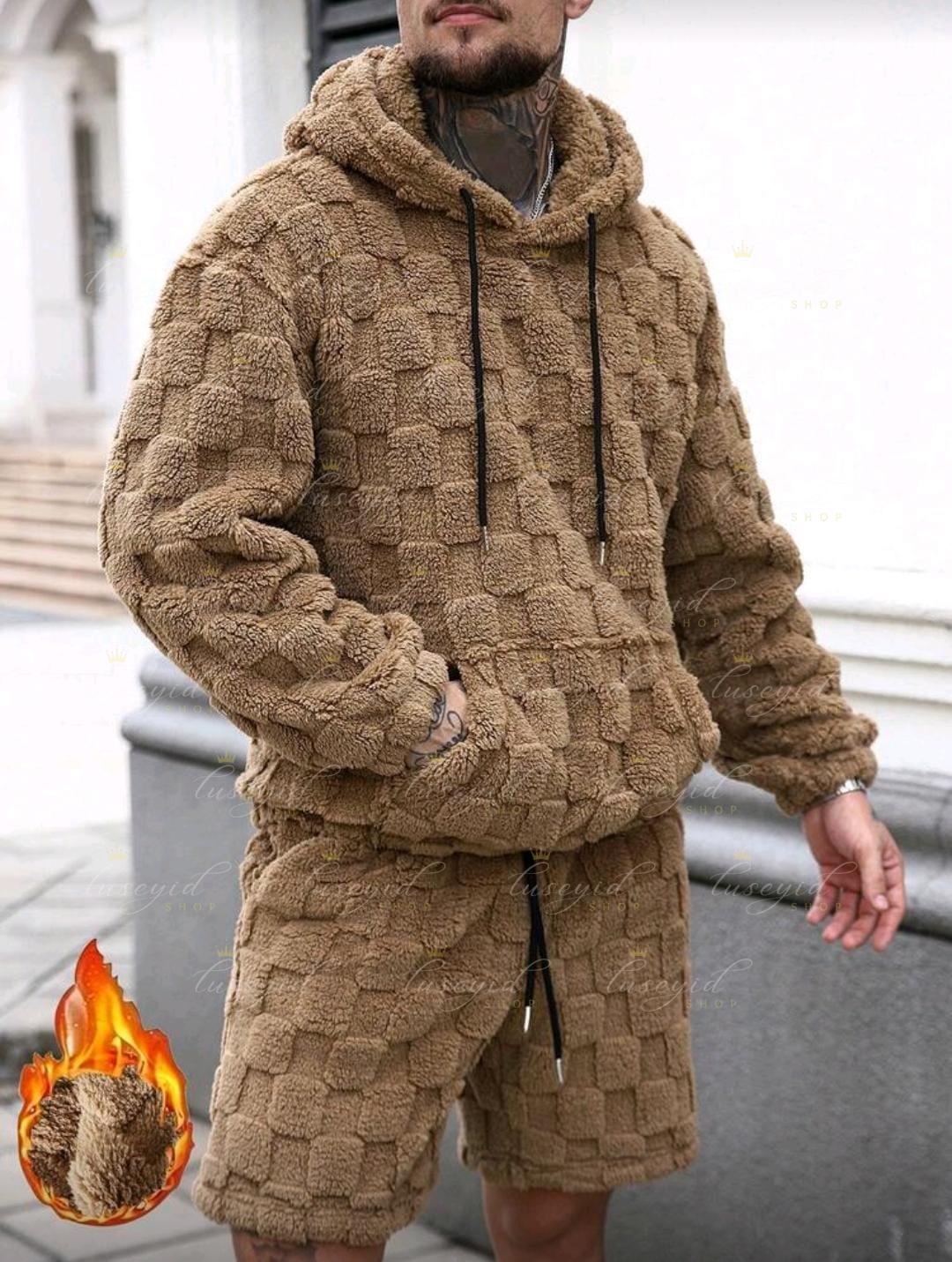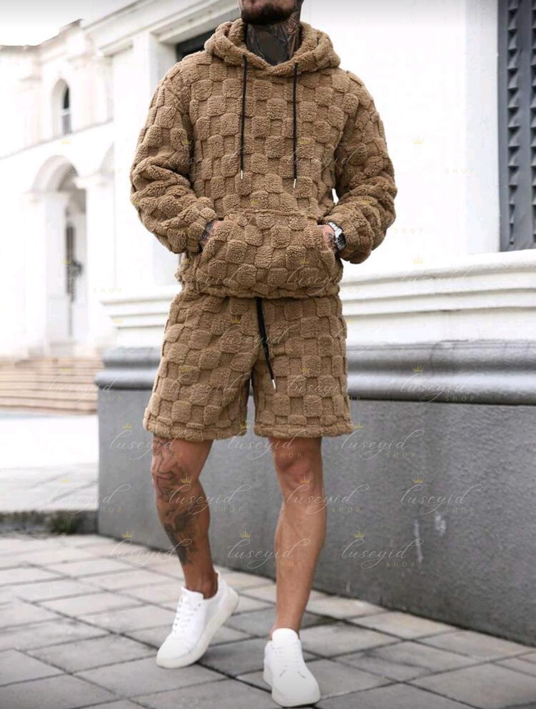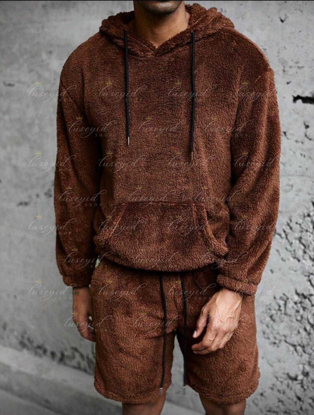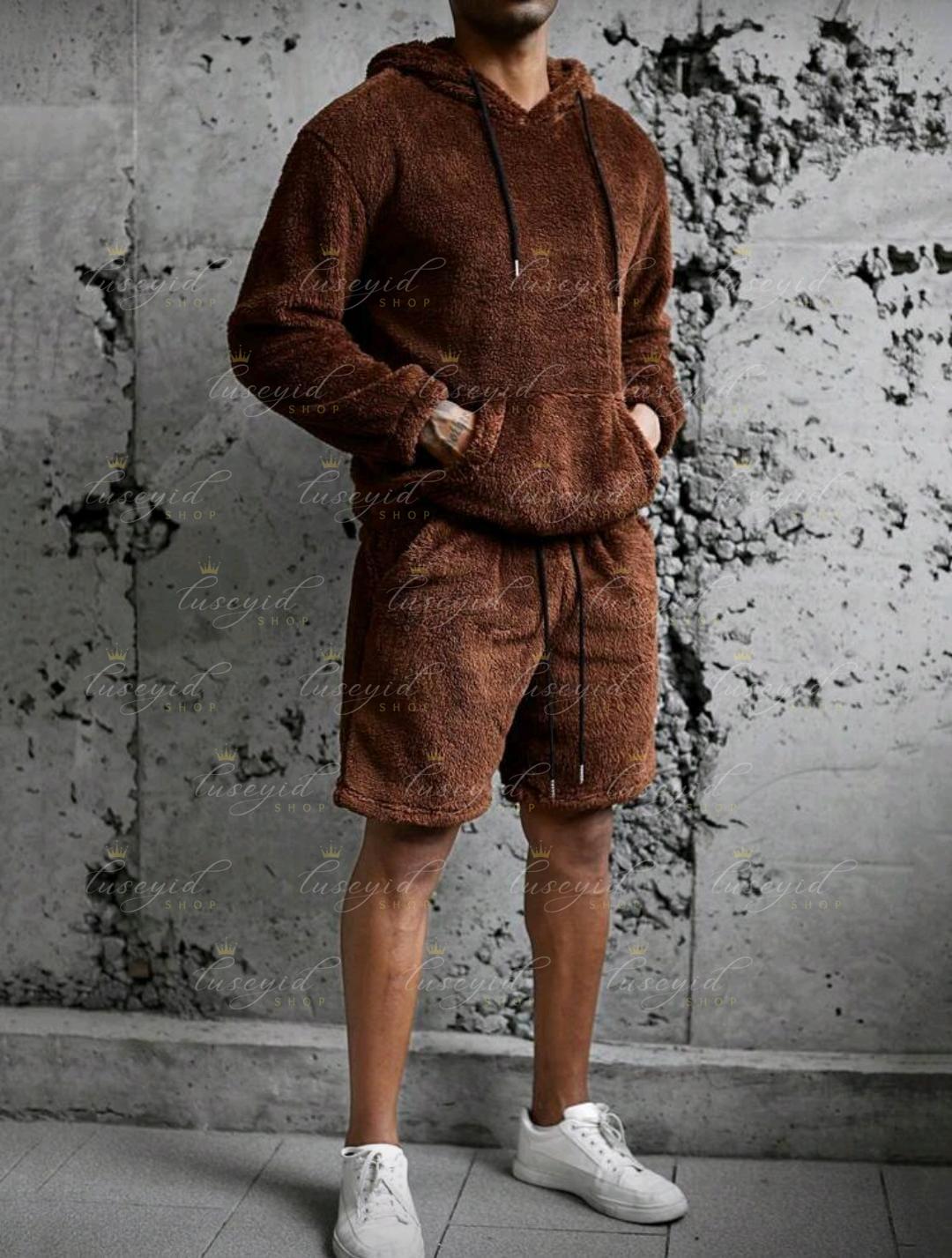Chillumni 2 piezas Conjunto casual de sudadera con capucha y pantalones cortos de unicolor con diseño de oreja de felpa para otoño e invierno, atuendos acogedores