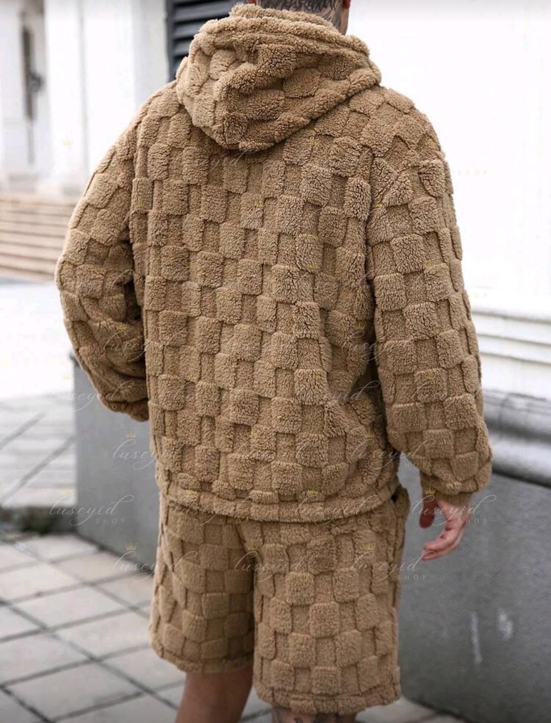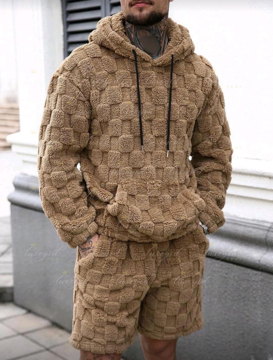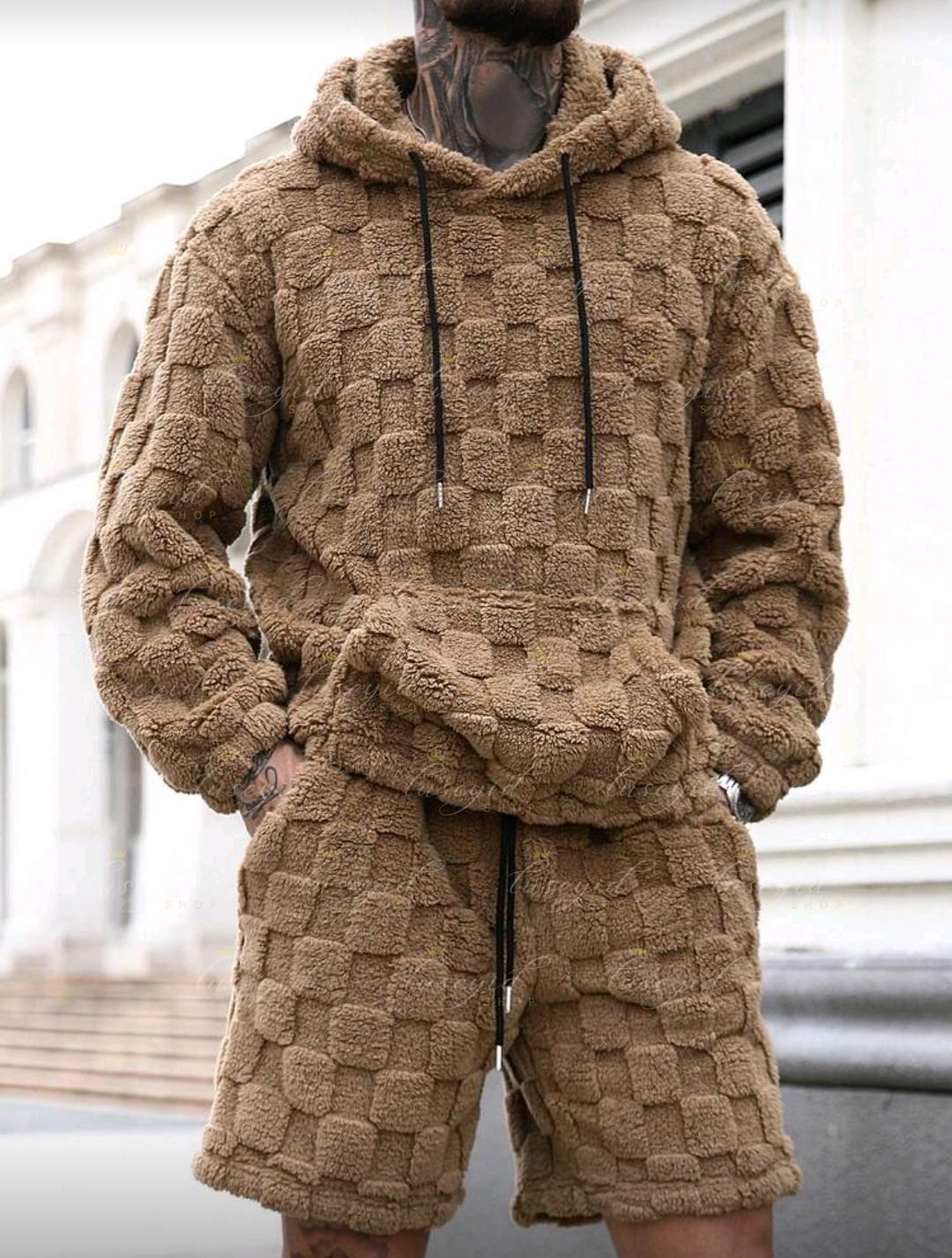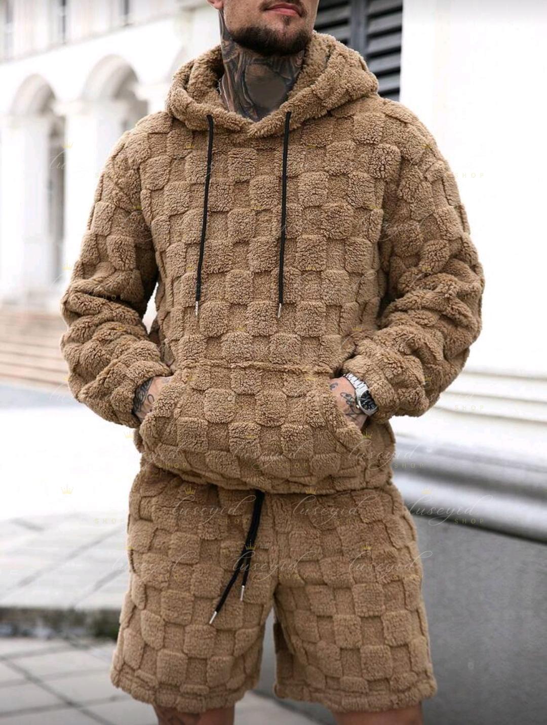 Chillumni 2 piezas Conjunto casual de sudadera con capucha y pantalones cortos de unicolor con diseño de oreja de felpa para otoño e invierno, atuendos acogedores