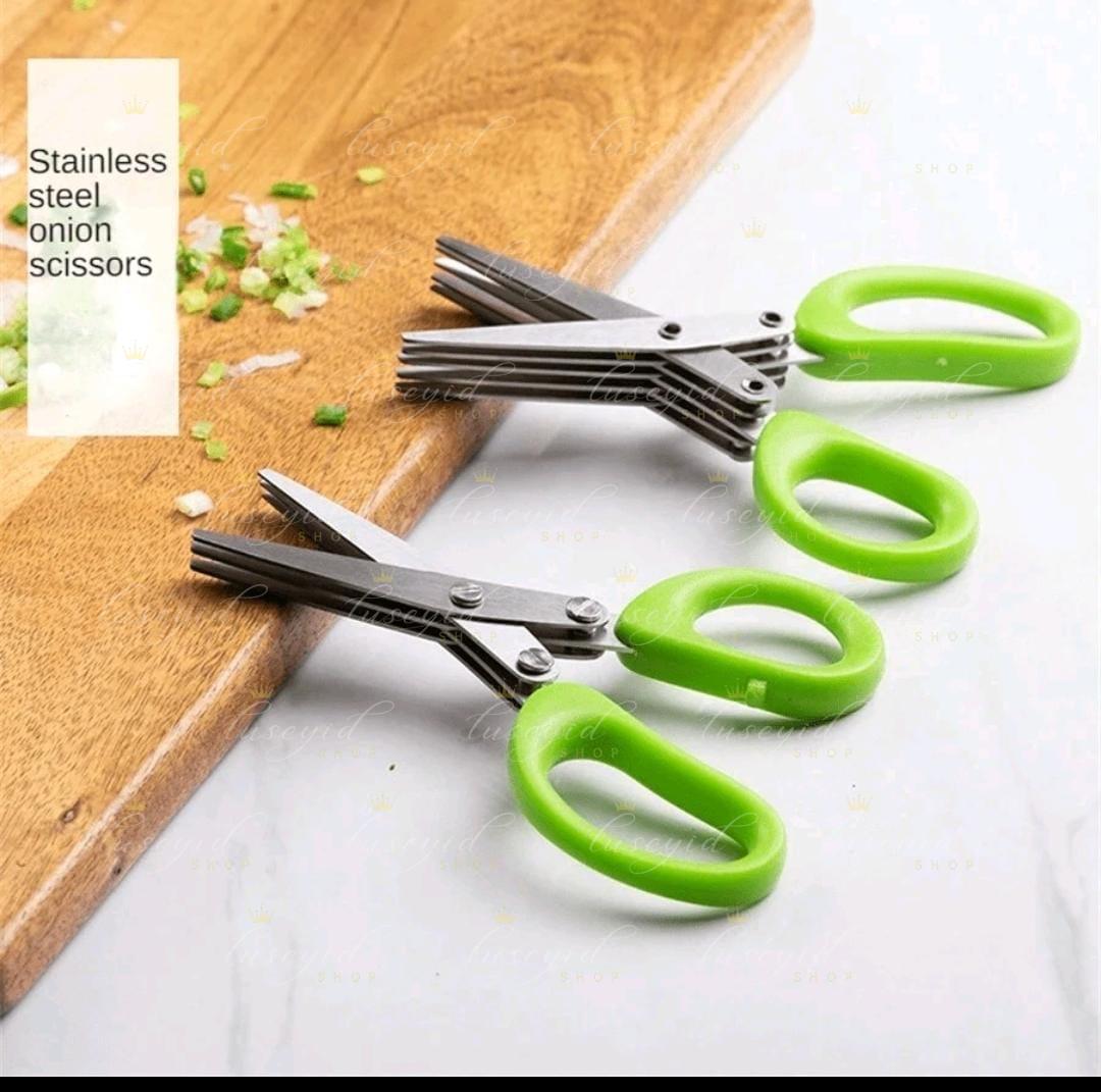 1 pieza Tijeras de cocina de acero inoxidable de 5 capas – Ideal para cortar cebollas, verduras, hierbas y especias – Herramienta de cocina imprescindible