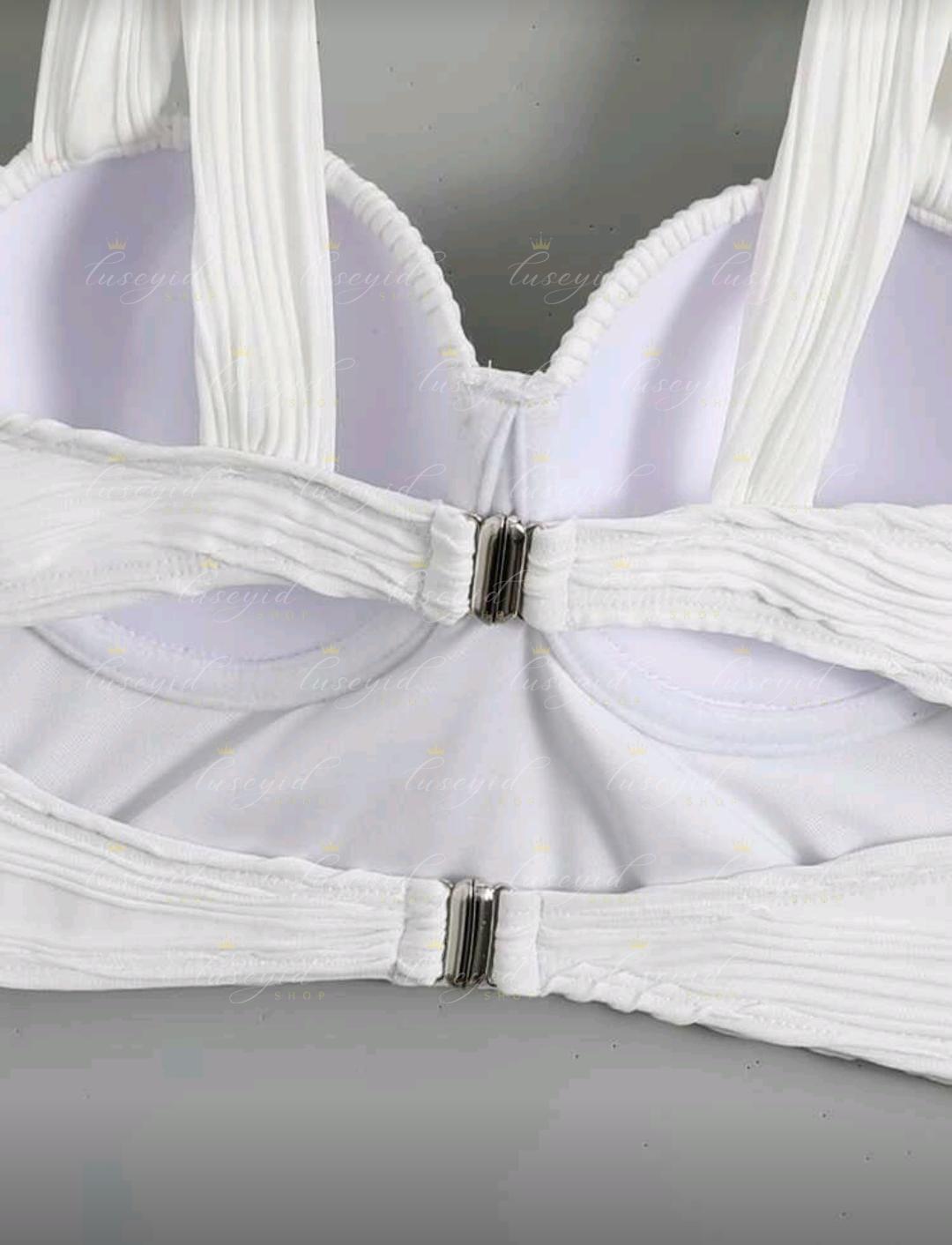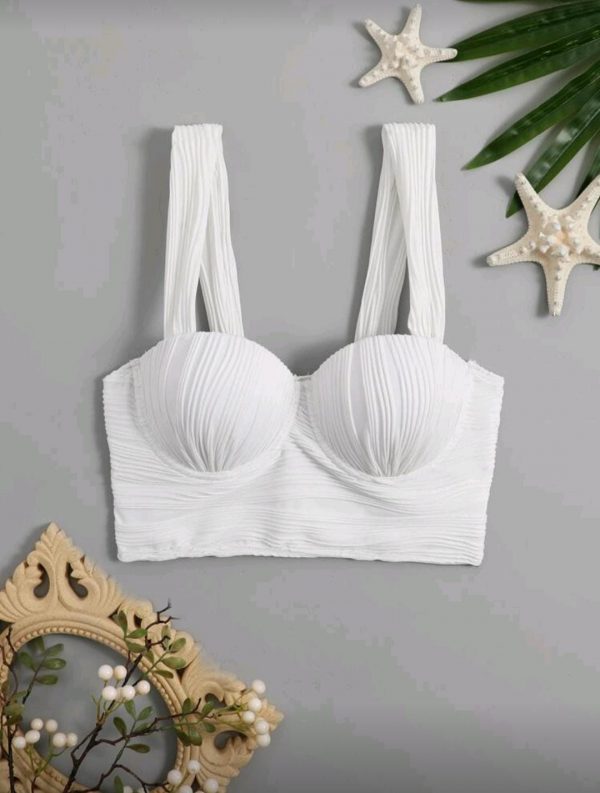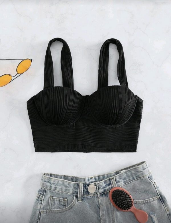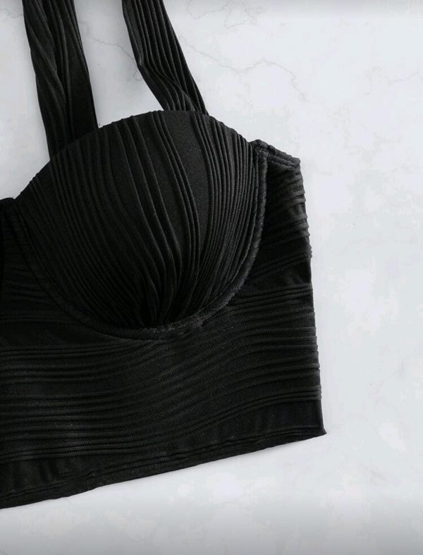 Top Corto Con Cuello Halter Y Malla De Diamantes Brillantes Para Mujer