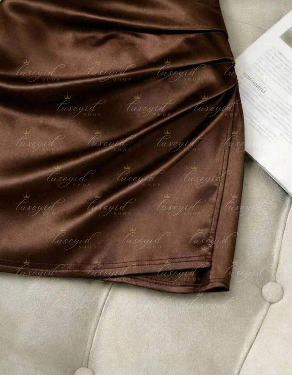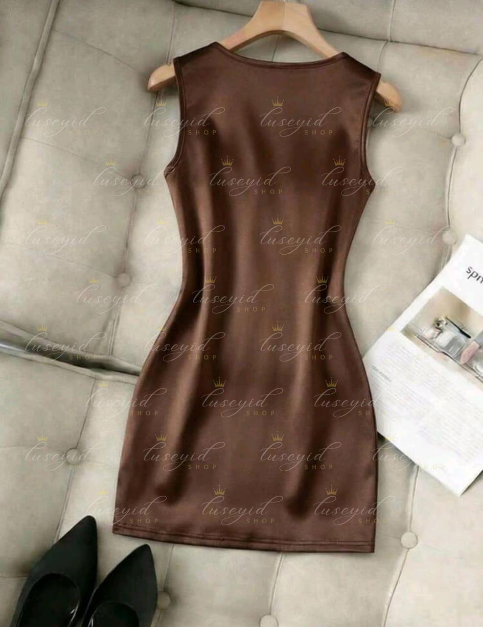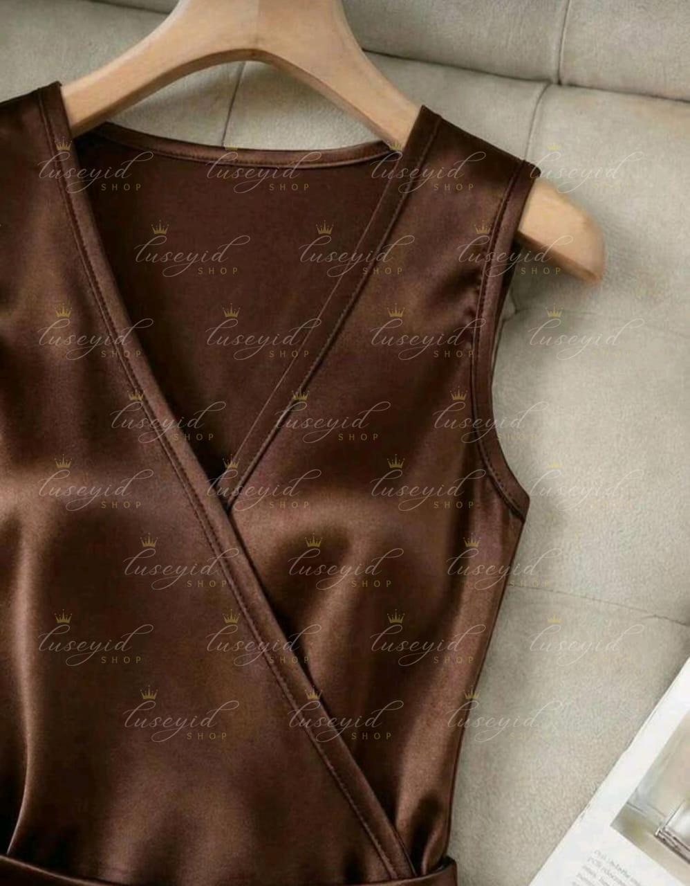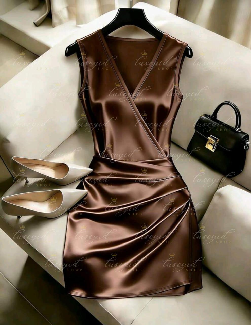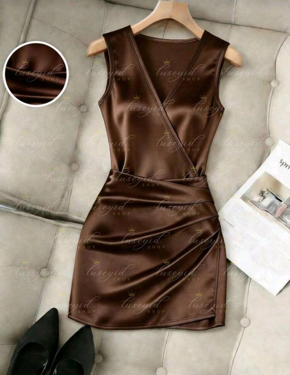 Vestido ajustado con cuello en V sin mangas, cintura plisada e irregular, vestido de satén para mujer, vestido de primavera/verano para mujer, vestido elegante de fiesta para mujer, atuendo de vacaciones para mujer, atuendo del Día de San Valentín para mujer, vestido marrón para mujer, vestido sexy para mujer, vestido sin mangas para mujer